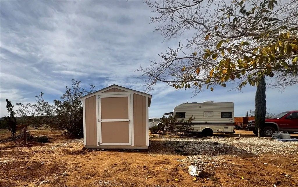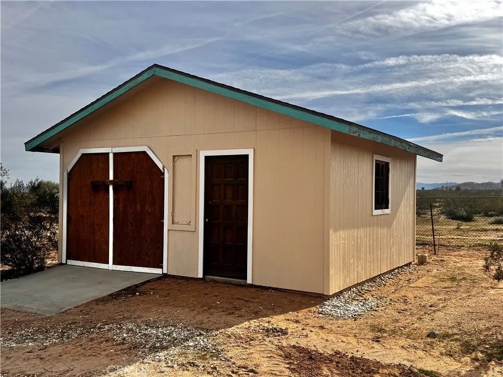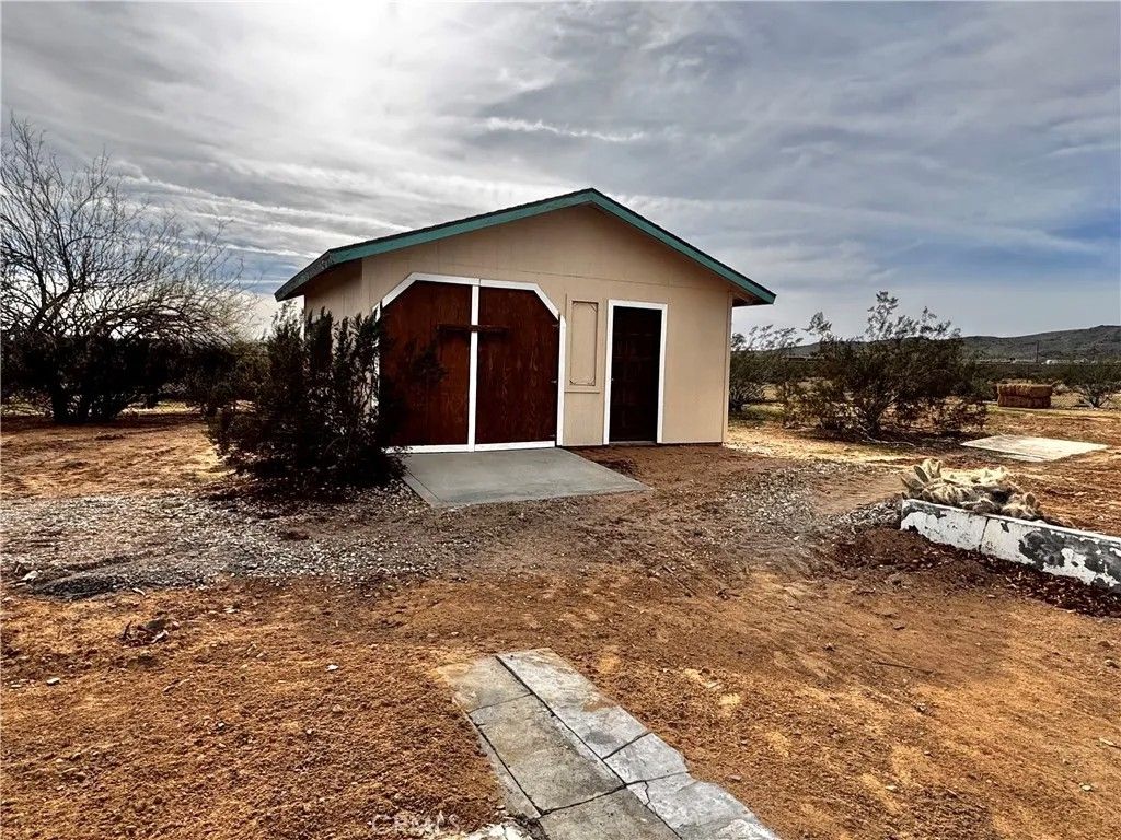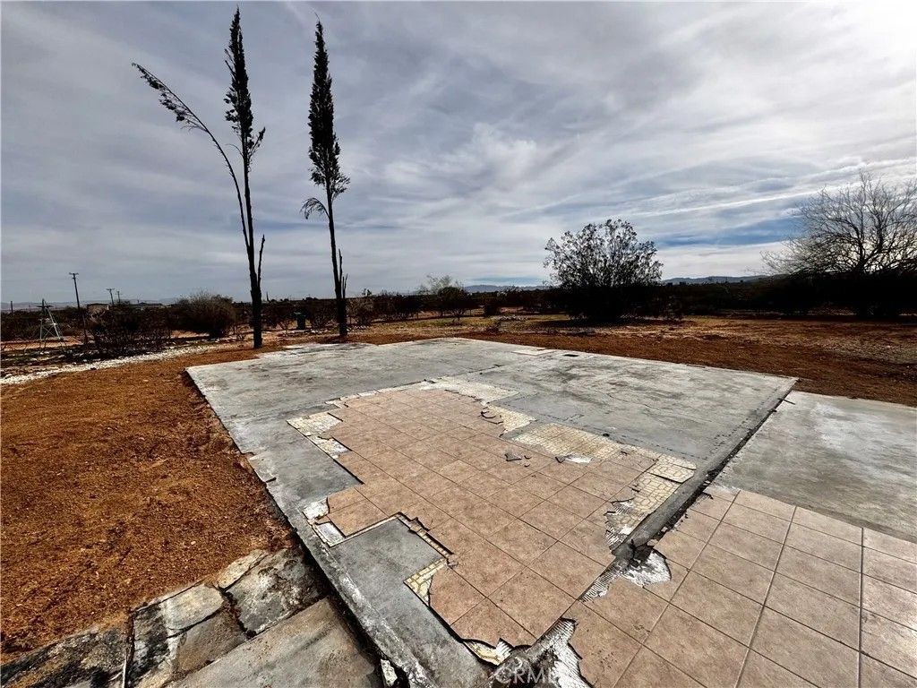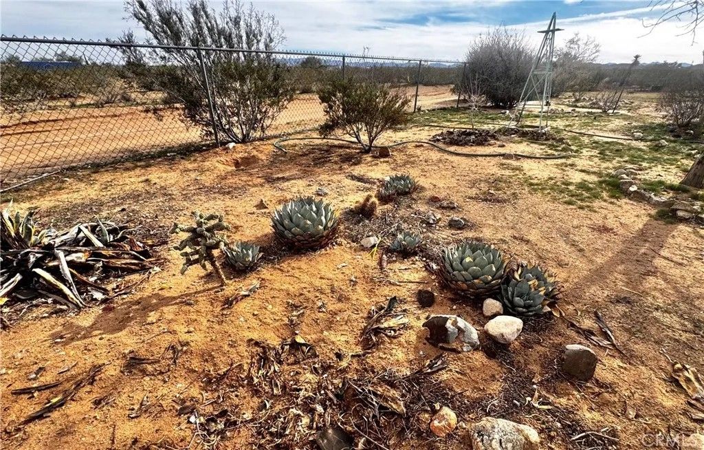 Acreage property in beautiful Landers! The house burned down, but the property has been cleaned up and the infrastructure is there! Water? You've got it! Power? It's right there and ready to reconnect when you plan your dream home! An address is assigned and existing structures currently on property include a one car garage with attached workshop and a relatively new Tuff Shed. There is a large slab where the house used to be, and complete chain link fencing with a lockable gate. This property sits on 2.5 acres with landscaping that includes mature mulberry and Joshua trees, blue agave and cacti. Pull up your RV, roll up those sleeves and get to work, or enjoy a secure spot with infrastructure for weekend camping. The stars are plenty, the views are endless, the privacy is pristine.