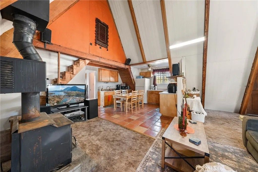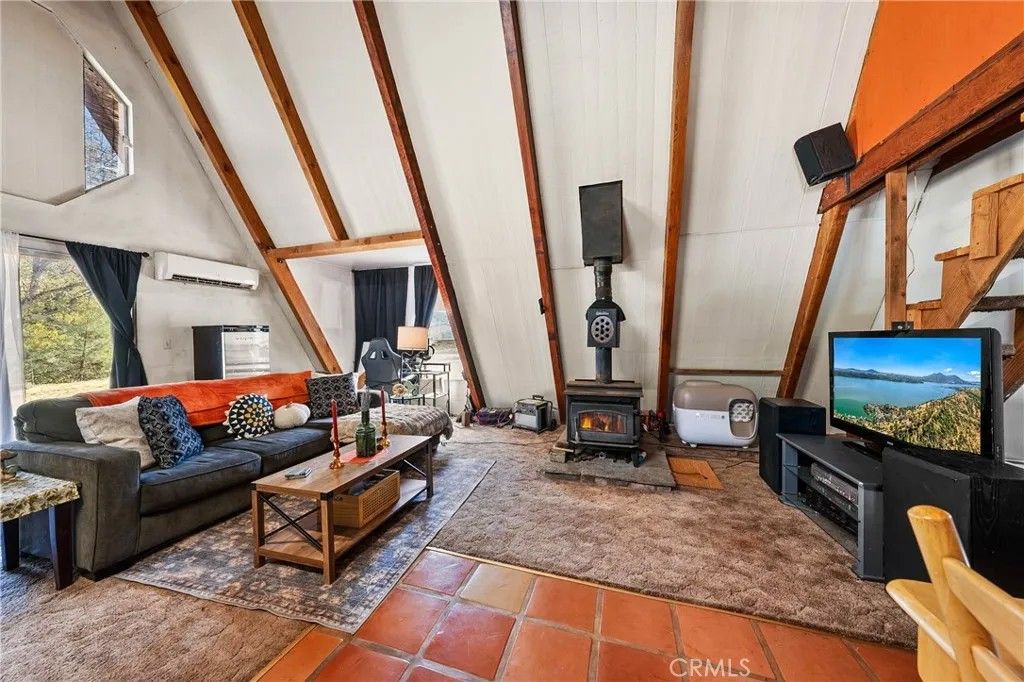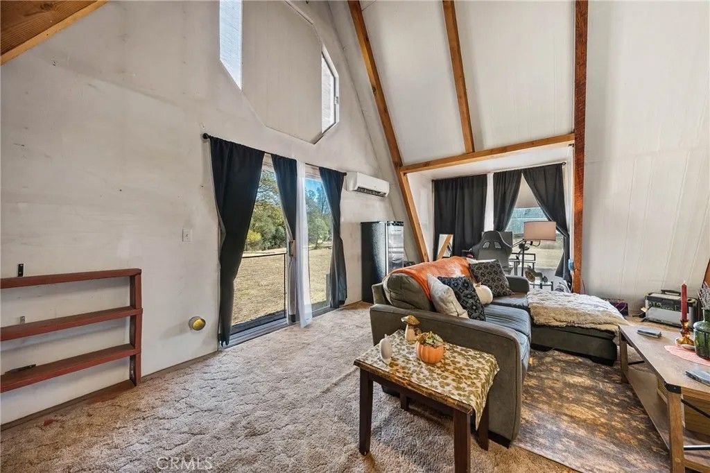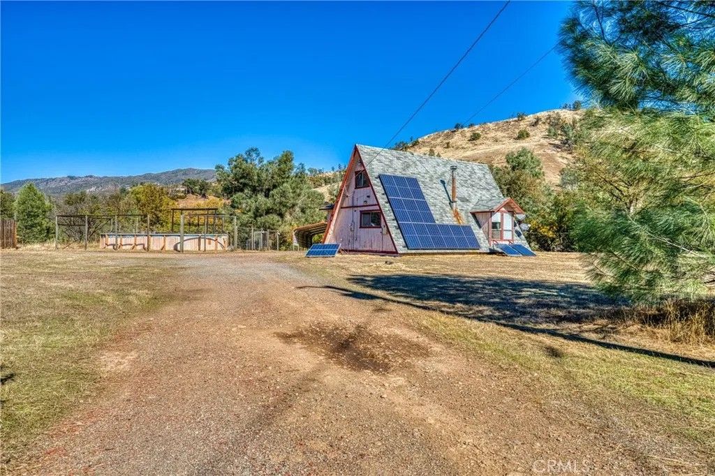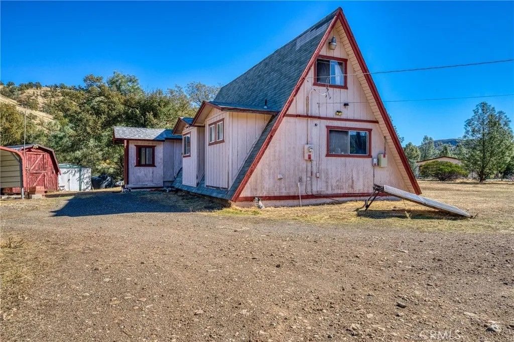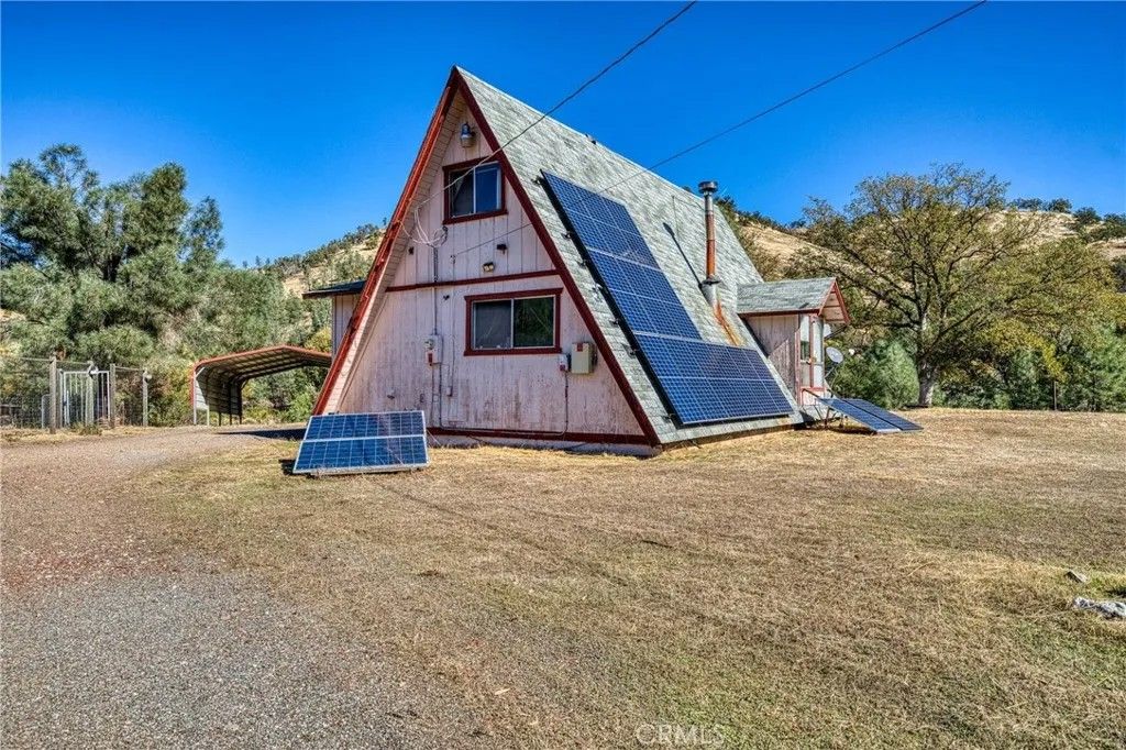 2 story A-Frame 1981 home with 1-bedroom, 1-full bathroom with upstairs loft that can be a potential bedroom or used for storage. This Tahoe feeling cabin style on .92 acres of owned land in beautiful Spring Valley Ca is one-of-a kind! Measuring at 816 square feet, the living room is very spacious as it opens to the dining area, kitchen and the one bedroom is cozy. Kitchen offers electric stove, dishwasher, refrigerator, and dual sink. Stackable washer and dryer is located in the bathroom. This incredibly sweet cabin has tall, vaulted ceilings, fireplace in the living room, fully functioning kitchen and solar with battery that is fully paid. Mini split to run A/C and heat. Property has 2-storage sheds outside. Metal carport to park your car plus additional parking throughout the property. Community WELL is 65.00 a month. Electric water heater. Perfectly placed in its very private and natural setting that borders along Wolf creek that runs seasonal. Estimated 10 min drive to Hwy 20.