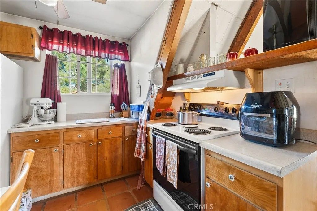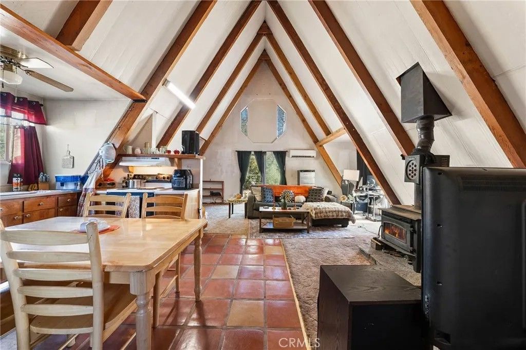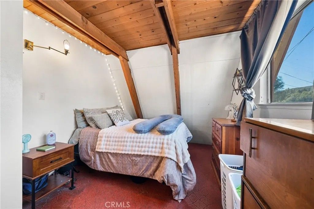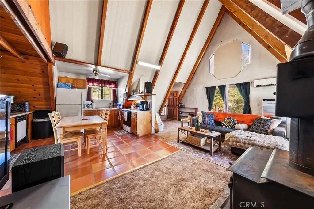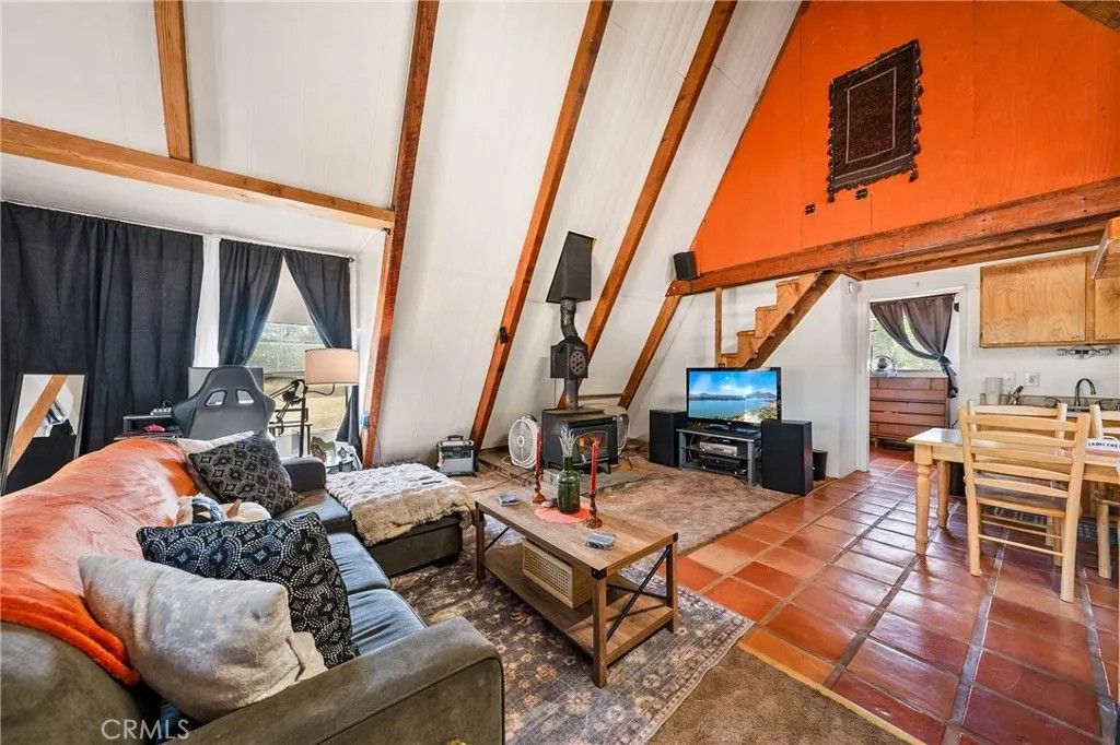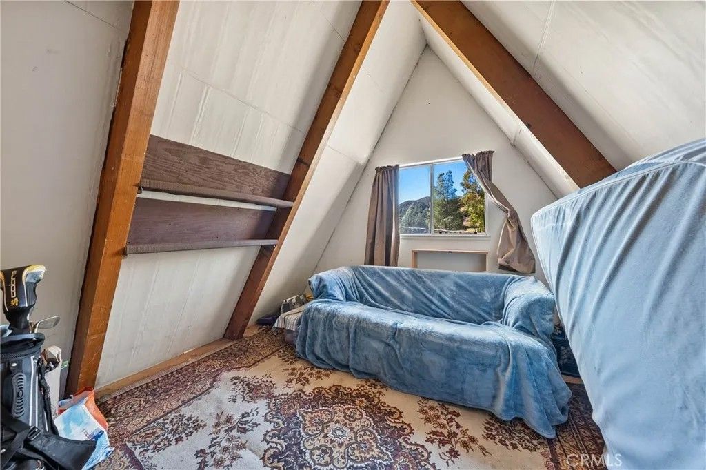 2 story A-Frame 1981 home with 1-bedroom, 1-full bathroom with upstairs loft that can be a potential bedroom or used for storage. This Tahoe feeling cabin style on .92 acres of owned land in beautiful Spring Valley Ca is one-of-a kind! Measuring at 816 square feet, the living room is very spacious as it opens to the dining area, kitchen and the one bedroom is cozy. Kitchen offers electric stove, dishwasher, refrigerator, and dual sink. Stackable washer and dryer is located in the bathroom. This incredibly sweet cabin has tall, vaulted ceilings, fireplace in the living room, fully functioning kitchen and solar with battery that is fully paid. Mini split to run A/C and heat. Property has 2-storage sheds outside. Metal carport to park your car plus additional parking throughout the property. Community WELL is 65.00 a month. Electric water heater. Perfectly placed in its very private and natural setting that borders along Wolf creek that runs seasonal. Estimated 10 min drive to Hwy 20.
