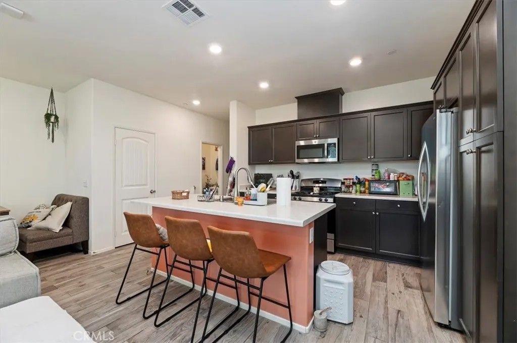 This charming 3-bedroom 2.5 bath home located in one of the most sought-after neighborhoods in Menifee offers a perfect blend of comfort, style, and modern upgradesideal for families, first-time buyers, or anyone looking to enjoy the best of the Menifee lifestyle. Step inside to find a bright open floor plan, and high ceilings, all enhanced by newer downstairs flooring, creating a fresh and contemporary feel throughout the main living areas. The spacious layout provides plenty of room for entertaining, relaxing, or gathering with loved ones. The well-appointed kitchen offers ample counter space and cabinetry, flowing seamlessly into the dining and living areas for effortless everyday living. Upstairs, leading into the private master bathroom retreat, you enter through a stylish barn door featuring a soaking tub, walk in shower, double sink vanity adding character and charm. All bedrooms are generously sized, offering space for rest, work, or play. Additional highlights include a saltwater softener system, solar system additionally adding value and convenience for the new homeowner. Outside, the front patio provides the perfect setting for BBQs, pets, or simply enjoying the sunny Menifee afternoons. With its peaceful streets, well-kept surroundings, and close proximity to shopping, dining, parks, and local amenities, this location is truly hard to beat. Dont miss the opportunity to own a beautiful home in one of Menifees most desirable areas!