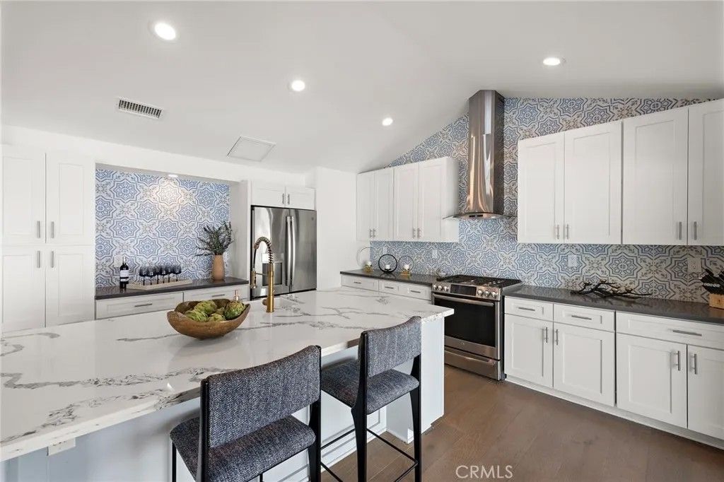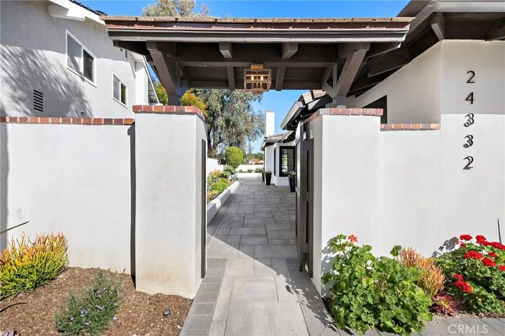 Completely reimagined with designer finishes and exceptional attention to detail, this beautiful and rarely available, remodeled single-story home in the coveted El Niguel Heights neighborhood offers 4 bedrooms and 3.5 bathrooms. You'll find the main bedroom en-suite has a oversized closet with built in shelving, dual sinks, oversized shower and lit vanity mirrors. There is a Jack & Jill bathroom between two of the guest rooms and the fourth bedroom also makes a terrific office space. No expense has been spared in featuring Jeld-Wen aluminum clad windows, Garrison wide-plank engineered hardwood flooring, brand new drywall finished to an almost perfectly smooth level inside. The exterior showcases new smooth stucco, custom planters and walls, and elegant Belgard concrete pavers, complimented by gorgeous new landscaping that enhances the home's curb appeal and back yard's beauty. The primary and secondary bathrooms have been completely remodeled with honed marble tile and flooring, creating a timeless & luxurious feel. The powder room features Kalista & Kohler fixtures paired with Serena & Lily wallpaper for a refined, designer touch. Additional upgrades include Reformation lighting fixtures, new interior doors and baseboards, and new high-end roof gutters with custom drain pipes. Every detail has been thoughtfully upgraded, delivering model-home quality throughout. This stunning property is truly turn-key & ready for immediate move-in. A terrific place for family & entertaining. Welcome home!!