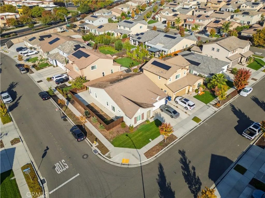 Corner Lot Home in a Desirable Turlock Neighborhood! Single-story contemporary home designed for comfort, efficiency, and style features 3 bedrooms and 2 baths. Step inside to discover an open-concept living area with laminate flooring throughout, recessed lighting, and a cozy electric fireplace that creates a warm and welcoming ambiance. The dining and family combo area flows effortlessly into a modern kitchen featuring granite countertops, an island with a sink, and premium appliances, including a double gas oven, dishwasher, disposal, and microwave. The primary suite is a true retreat with a ceiling fan, a walk-in closet, and a bathroom offering granite counters, dual sinks, a soaking tub, and a shower stall. Two additional bedrooms feature ceiling fans, sliding closet doors, and laminate flooring. Enjoy the outdoors with a landscaped backyard, automatic sprinkler systems, and a covered patio ideal for relaxing or entertaining. Additional highlights include an inside laundry room, an attached 2-car garage with finished walls, and leased solar panels for energy efficiency. Located in one of Turlocks desirable residential areas, this home is close to parks, shopping, top-rated schools, and commuter access, offering the perfect blend of convenience and quality living.