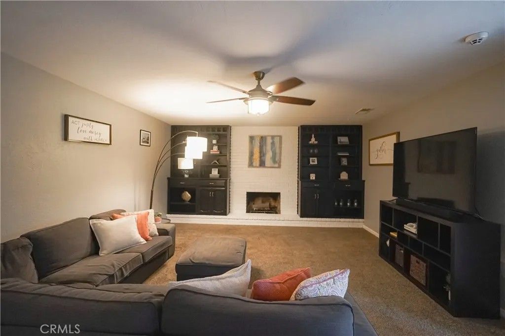 Welcome to your private retreat at the end of a cul-de-sacwhere everyday living feels like an inviting getaway! This stunning 4-bedroom, 3-bath residence with a 2-car garage makes a grand first impression with dramatic double-door entry and soaring vaulted ceilings that immediately set the tone for elegance and space. The heart of the home is a gorgeously updated kitchen designed to impress, featuring sleek quartz countertops, a stylish tile backsplash, a new stove, and modern finishes. It flows seamlessly into the inviting family room, complete with a cozy fireplace, custom built-ins, and a wet barperfect for relaxed evenings or lively gatherings. Entertain effortlessly in the expansive living room with its own charming fireplace, or host memorable dinners in the formal dining area framed by natural light and refined details. Step outside and discover your personal resort-style oasis. The backyard features a sparkling gunite swimming pool, an expansive covered patio that spans the length of the home, a breezeway, open-air lounging spaces, and a gated garden bed ready for your vision. This is a space designed for both serene mornings and unforgettable entertaining under the stars. The primary suite is your sanctuary, offering a serene sitting area, a generous walk-in closet, and private bathroom. Secondary bedrooms are comfortably sized, providing flexibility for family, guests, or a home office. Additional highlights include ceiling fans throughout, RV parking, some freshly painted cabinetry, a large matching storage shed, and garden storage. This home is the perfect blend of comfort, sophistication, and outdoor luxuryan exceptional opportunity to live, relax, and entertain in style. Your future awaits!