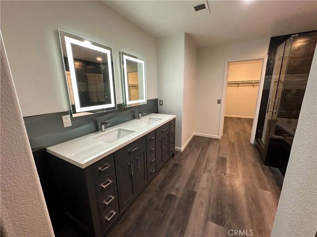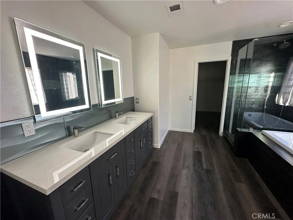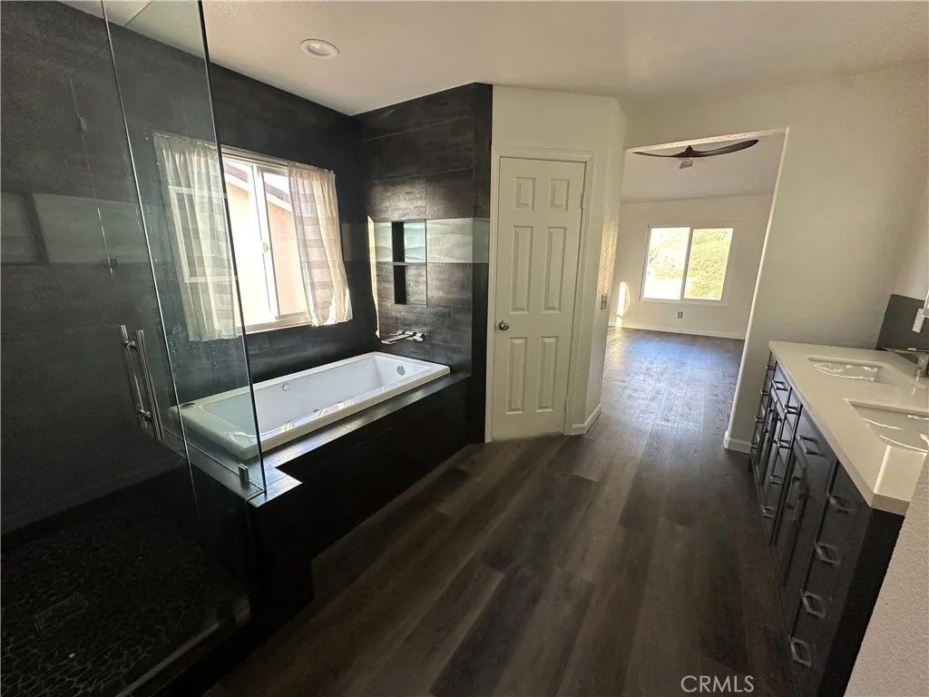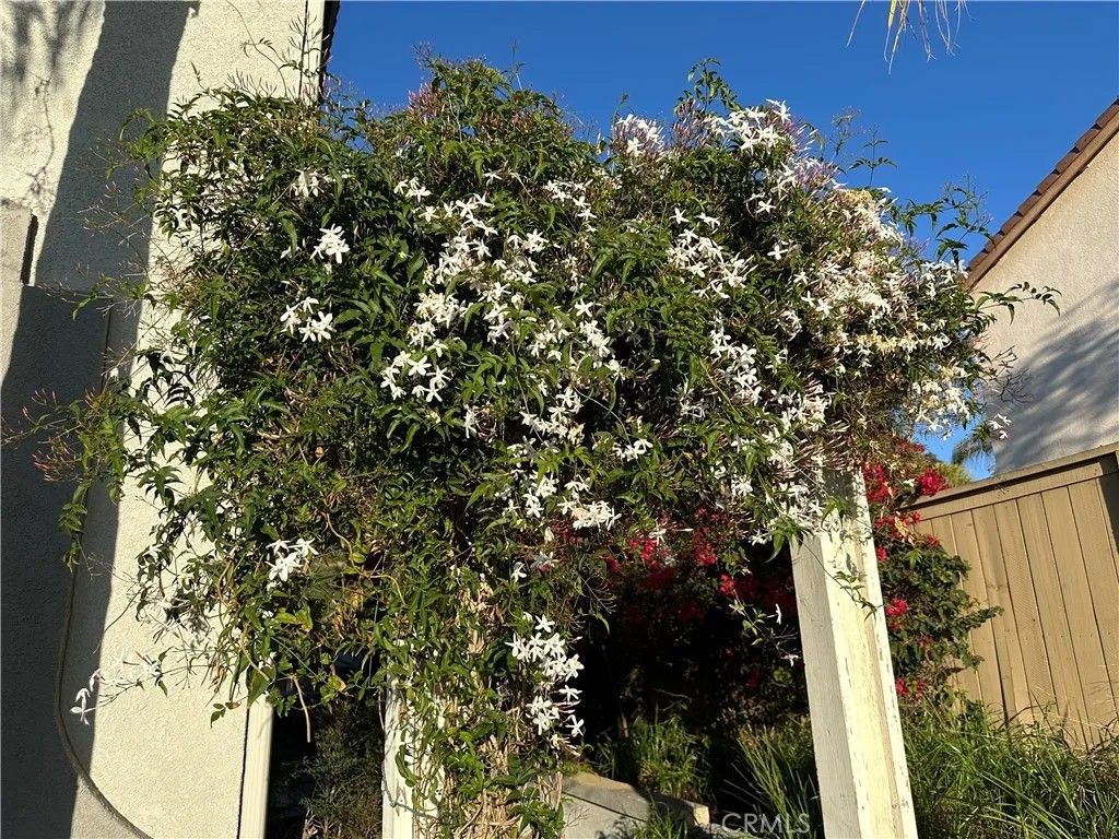 Energy-independent home featuring 3 Tesla Powerwall batteries with a owned, not leased solar panel system, dedicated electric vehicle and recreational vehicle charging station, high-insulating solar-rated vinyl windows and sliding door, high-insulating exterior paint, and energy-efficient lighting throughout. The custom master suite includes a relaxing spa tub, ceramic tile shower and bath, his and hers lighted vanity mirrors, elegant brushed nickel fixtures, and a spacious walk-in closet. You'll find durable ceramic tile flooring on the main level and easy-care vinyl plank flooring upstairs. The kitchen boasts beautiful granite countertops and a built-in water filtration system for clean drinking water. The living room features a cozy brick-surround gas fireplace with a classic cast iron grate and stylish ceiling fans. A flexible first-floor room works perfectly as a home office or guest bedroom, and the home is equipped with high-speed fiber optic internet for seamless connectivity. A security door at the front entrance adds peace of mind. Step outside to a low-maintenance hardscaped patio complete with an outdoor gas fireplace and a commercial-grade gas cooking rangeperfect for entertaining. The backyard includes fruit-bearing orange, lemon, and lime trees plus fragrant night-blooming jasmine. There are no homes behind the property, offering privacy and direct access to scenic walking trails. The neighborhood is within easy walking distance to three parks, athletic fields, the city swimming pool, and tennis and basketball courts. Enjoy quiet evenings away from highway noise while being just ten minutes from shopping, dining, and local amenities.