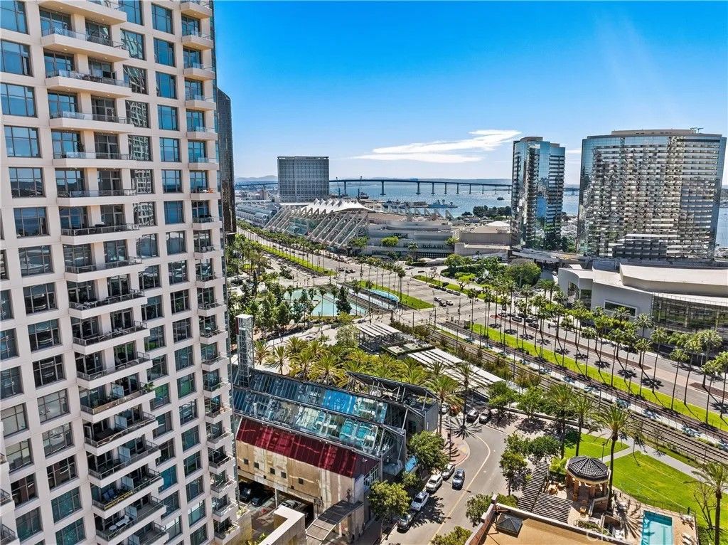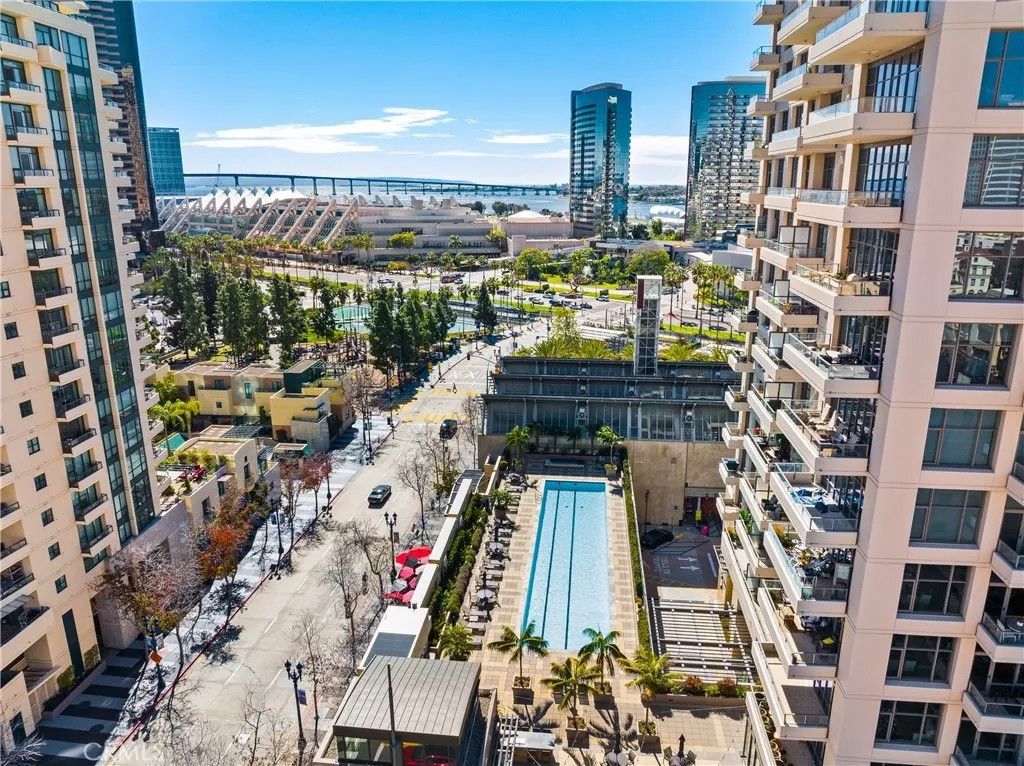-Bay and Ocean Views - Private Parking - Luxury Amenities - Steps from Fine Dining and World-Class Entertainment - Experience the gold standard of downtown living in this meticulously reimagined 10th-floor masterpiece at the prestigious Pinnacle Marina Tower. This sophisticated sanctuary features 10-foot ceilings and floor-to-ceiling glass framing a world-class panorama of the San Diego Bay, Pacific Ocean, and Coronado Island. Relish epic sunsets from your private balcony or watch the space transform by the magic of city lights and moonrises. No detail was spared in this top-to-bottom remodel radiating cosmopolitan elegance. The residence boasts DuChateau natural wood flooring, a spa-inspired bath with a custom-tiled walk-in shower, and a chefs kitchen outfitted with premium Miele appliances and a Sub-Zero refrigerator. For ultimate convenience, the home includes a spacious walk-in closet with built-in wardrobes, a full-size washer/dryer, and a secure garage parking space valued at over $60,000. Life at the Pinnacle offers a resort lifestyle with a 95-foot lap pool, fitness center, and a dedicated concierge team. Located steps from the Rady Shell, Seaport Village, and Petco Park, you are at the center of San Diegos most dynamic neighborhood. With MLK Park across the streeta perfect retreat for pet ownersthis is the ultimate urban sanctuary. Elevated living meets vibrant energymake it yours today!