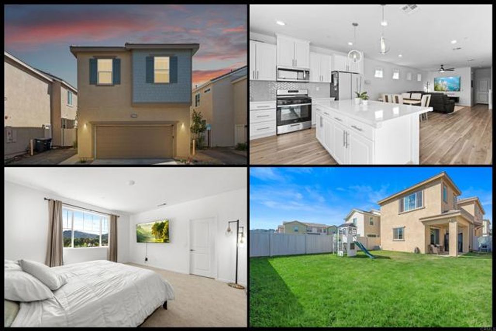 PAID SOLAR, LOW HOA, VA ASSUMABLE LOAN!! Best value in the community! Great size lot with green backyard! Bring your pickiest buyer! Discover modern living in this pristine 2022-built home nestled in a vibrant gated community. This well-maintained 3-bedroom, 2.5-bathroom residence features paid solar panels, offering energy efficiency and cost savings. The spacious backyard, one of the largest in the community, provides ample space for outdoor entertainment and relaxation. Community amenities abound with two resort-style pools, a relaxing jacuzzi, and a well-equipped fitness center. Stay active with tennis courts and scenic walking trails that wind through the neighborhood. The family-friendly environment includes multiple children's playgrounds and two dedicated dog parks, perfect for both two-legged and four-legged family members. Located in the emerging Valley Center area, this home offers the perfect blend of peaceful suburban living with convenient access to upcoming developments and amenities. The low HOA fees provide exceptional value considering the extensive community features. Don't miss this opportunity to own a nearly new home in this sought-after neighborhood.