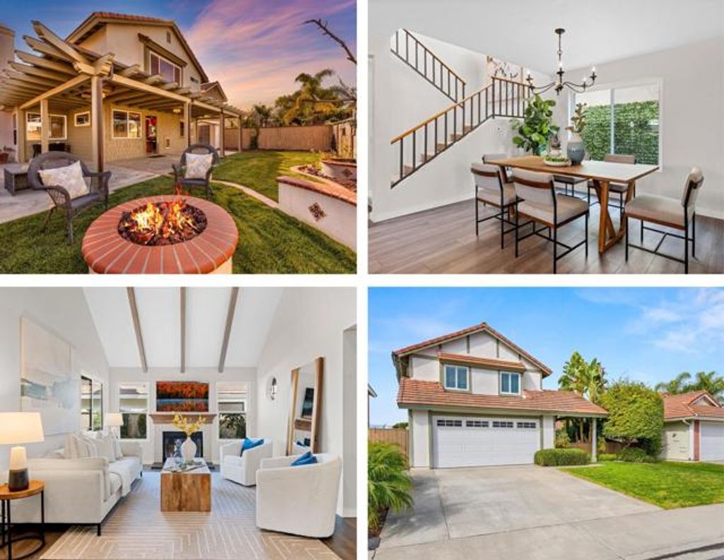 This beautifully upgraded solar home offers the perfect blend of style, comfort, and prime location. Nestled in the gated Rancho Montecito community within the highly desirable Shadowridge neighborhood, this 3-bedroom + LOFT residence is less than 10 miles to the beach with easy access to the coastal gems of Oceanside and Carlsbad. An enclosed front patio surrounded by lush tropical landscaping and a serene fountain sets the tone for a peaceful, private entryway. Step inside and this home exudes elegance, warmth, and sophistication, showcasing stunning faux wood floors, luminous skylights, and a spacious gathering room featuring dramatic wood beam vaulted ceilings, a chic fireplace, and an adjacent formal dining room. The modern kitchen is designed for both style and functionality, featuring sleek stainless-steel appliances, granite countertops, and rich cherry Kraft Maid cabinets. Thoughtfully lit with recessed lighting, this space is equipped with a gas stove, built-in microwave, and dishwasher for effortless meal prep. The breakfast bar and spacious eat-in dining area make it the perfect spot for everything from Sunday brunches to wine nights with friends. Designed for seamless indoor-outdoor living, the fully enclosed backyard is complete with a covered patio, statement fountain, privacy fencing, and a built-in firepit area. The retreat-inspired primary suite offers a cozy sitting nook and an en-suite bath with a luxurious jetted tub and dual sink vanity. Generously sized secondary bedrooms and a versatile loft provide ample space for work, play, or relaxation. Addition
