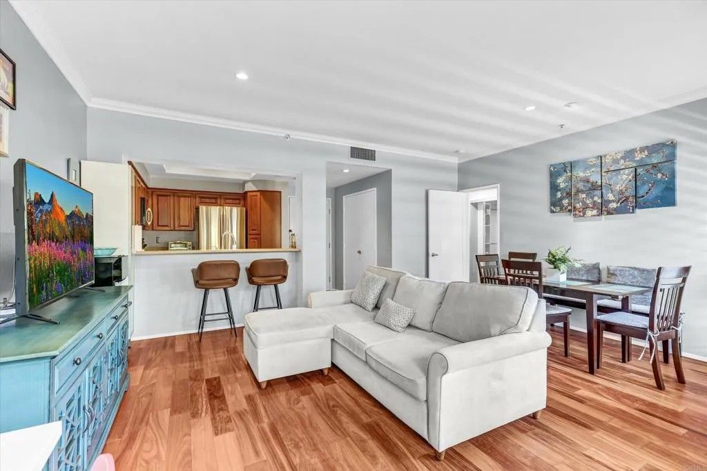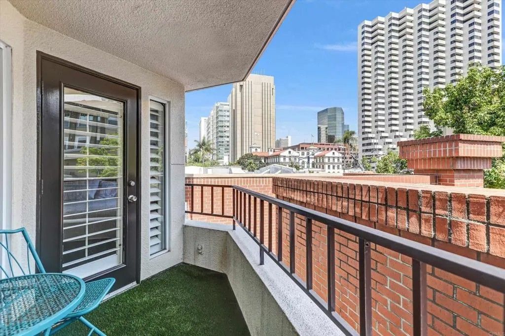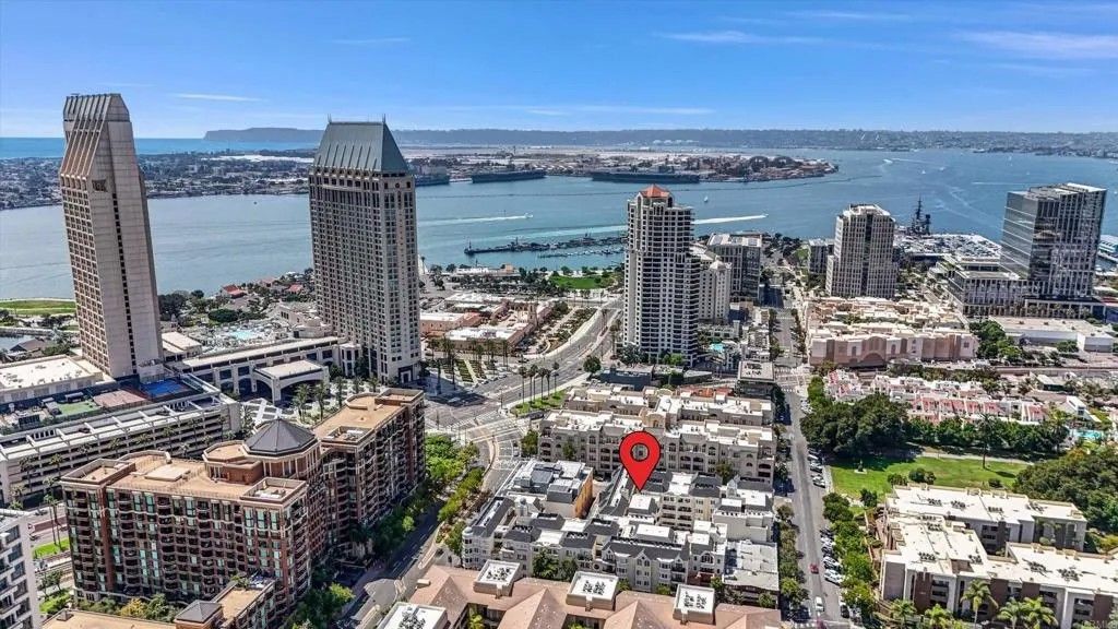 Excellent! Investment opportunity: Do not miss this beautifully updated one-bedroom, one-bath Corner unit in Downtown San Diego's Marina District. This unit is bright and sunny. Imagine yourself enjoying breakfast or a wonderful dinner on the balcony overlooking the beautiful San Diego scenery. The property has hardwood floors, shutters, and an upgraded bathroom. The kitchen is equipped with stainless steel appliances and wood cabinets, perfect for cooking and entertaining. The seller just installed a new HVAC System. It has a dedicated secure parking space in a private garage. The HOA allows 1-month rentals, making it an incredible opportunity.