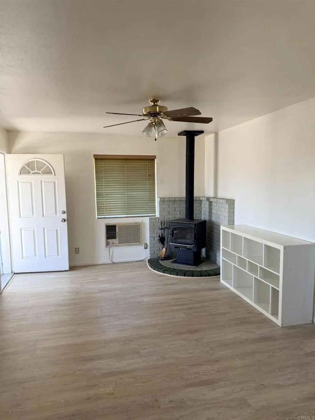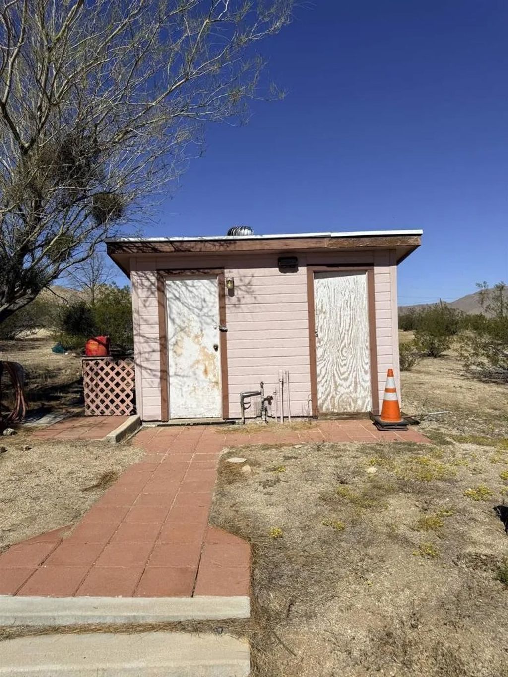 Ranch style home in Julian/Shelter Valley. Features 1 bedroom, 1 bath on 4.14. all usable acres. Bedroom has built-ins for storage. Gate entry, enclosed front porch, wood burning stove. Kitchen with refrigerator and stove. Outbuilding for storage. On a shared well.