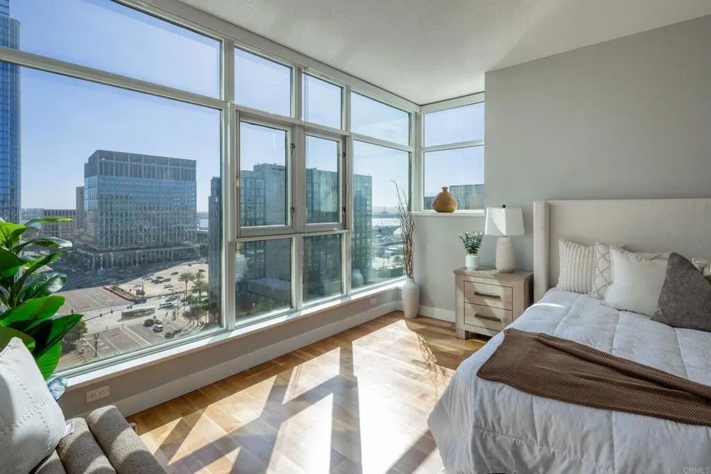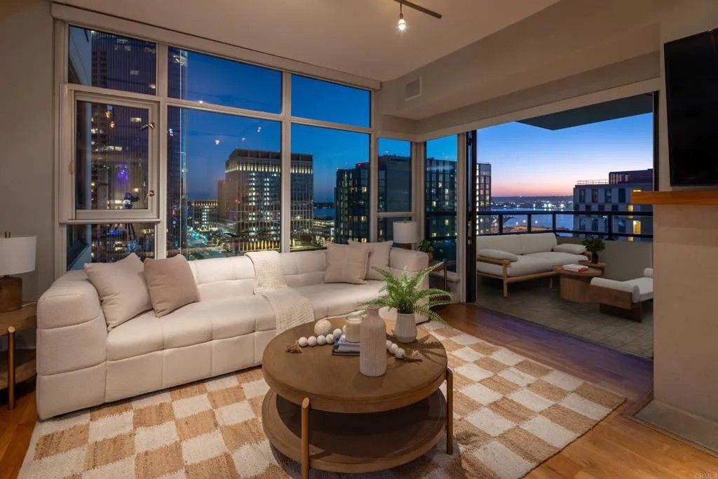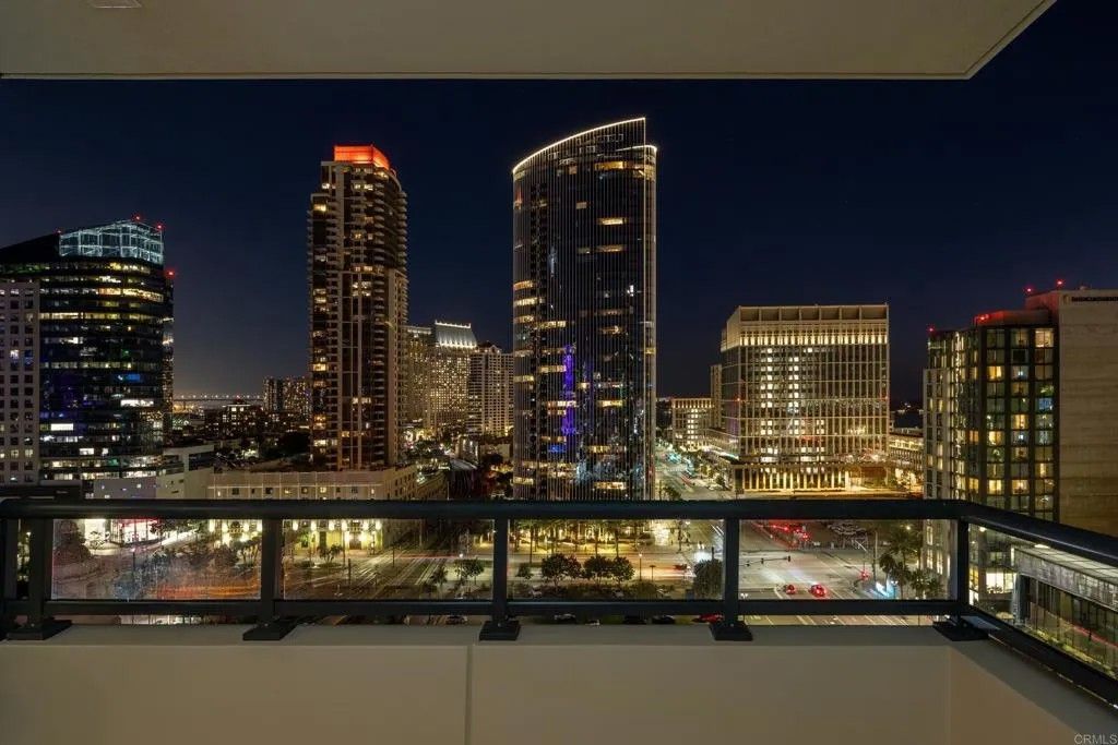 Panoramic bay & skyline views are the centerpiece of this luxury condo at the iconic Grande South on Millionaires Row. The open-concept design showcases expansive windows in every room that fill the space with natural light and frame sweeping views of the harbor and downtown. The custom kitchen is appointed with granite countertops, stainless appliances, wine fridge, and counter seating that flows seamlessly into the living and dining area. Step outside onto your private balcony, perfectly positioned to take in sunsets over the water. The primary bedroom with ensuite bath has a dual vanity, soaking tub, and walk-in shower. An optional third bedroom offers the flexibility to create an incredible home office or creative space, where you can work while soaking in views of the bay and city lights. Resort-style amenities provide an 80' pool, hot tub, steam room, sauna, recently remodeled gym, on-site concierge, 24/7 security, BBQ area, guest suite, and secured bicycle storage. Two side-by-side underground parking spaces, an additional motorcycle space, and a locked storage area are also included. With a Walk Score of 95, this home is surrounded by the best of downtown. Little Italy, the Marina District, Waterfront Park, Seaport Village, and the Embarcadero, are all within walking distance, while the Gaslamp Quarter, the Rady Shell, and Petco Park are a quick trolley ride away. This is the epitome of Downtown San Diego living, offering endless options for dining, shopping, and entertainment.
