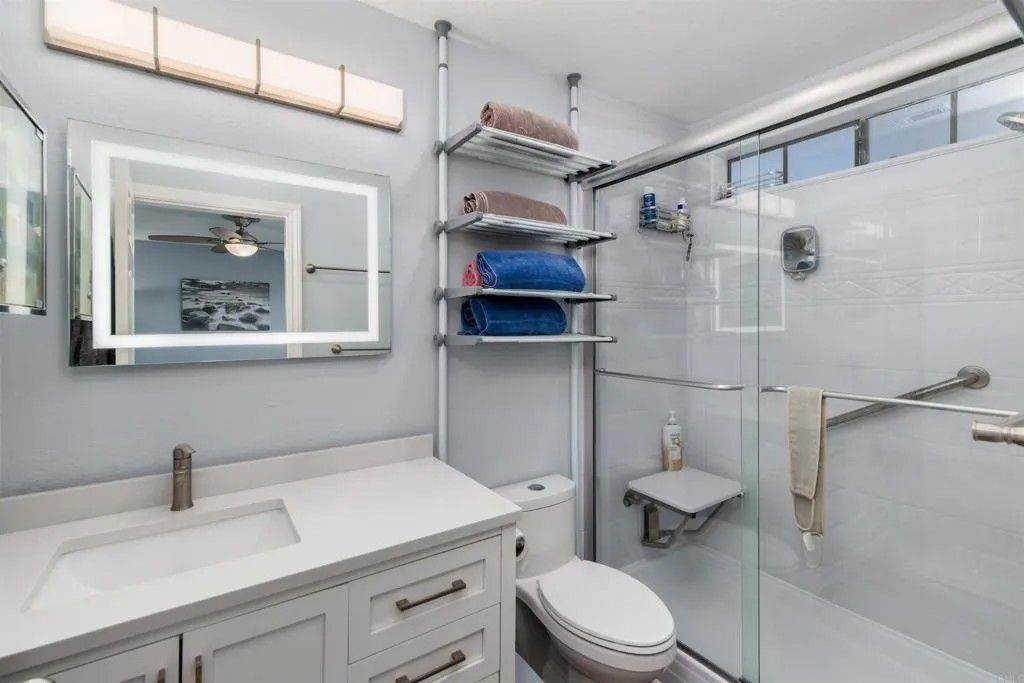 Great opportunity with an assumable VA loan at a 2.25% interest rate! Welcome to one of the most updated homes in the sought-after Vista Way Village communitya gated hillside retreat less than 5 miles from the beach. This western-facing terrace-level unit captures refreshing ocean breezes and natural shade, keeping your home comfortable year-round. Inside, nearly every detail has been upgraded for style and convenience. The kitchen features Brazilian Aquarella quartz countertops (2022), updated cabinets, a breakfast bar, new Whirlpool appliances including a double-door refrigerator, quiet dishwasher, oven, and over-the-range microwave (2024), plus bright 2x4 LED skylight panel lighting. The bathrooms shine with a custom vanity, a Spanish tile floor, a new tub and surround with a lifetime warranty, marble and quartz counters, and modern LED lighting. The home also boasts newer Anderson Windows, high-traffic LVP flooring (2024), smart integration on all switches, LED lighting and ceiling fans throughout, and fresh paint. In-unit laundry hookups are included for your convenience. Enjoy a private balcony and a spacious lawn directly outside your doorperfect for relaxing outdoors or letting pets stretch their legs. A one-car garage plus an additional assigned space provide ample parking. Vista Way Village offers resort-style amenities: 2 pools, 2 Jacuzzis, BBQ areas, a clubhouse, fitness center, tennis/sports court, gazebos, childrens play area, and doggy stations throughout. The community is gated with security, providing residents with peace of mind alongside its many lifestyle perks.The location is unbeatableclose to I-5, Hwy 78, and 76, with shopping, dining, groceries, medical facilities, and the VA Clinic nearby. The Shoppes at Carlsbad and the new Frontwave Arena are just over a mile away. This is a rare opportunity to own a stylishly upgraded home in a vibrant, coastal community with every convenience at your doorstep.