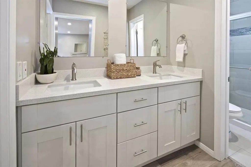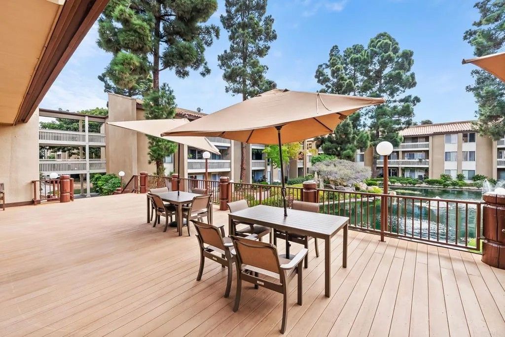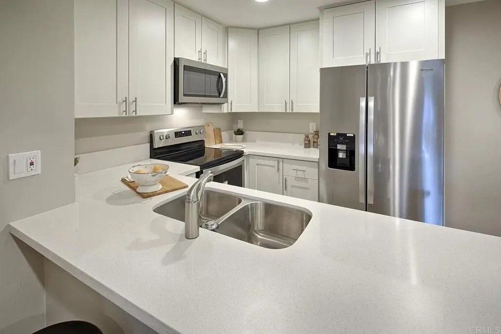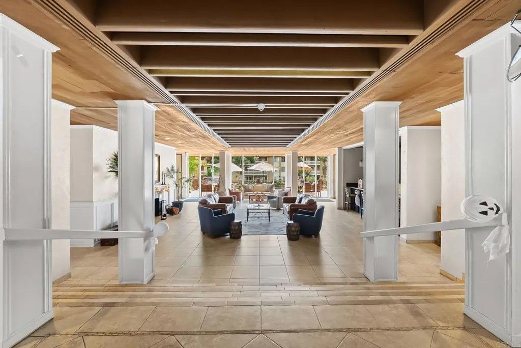 Full reno in 2019, the home features, new A/C, new plumbing, electrical panel & circuits, lighting, & finishes. The stunning kitchen showcases solid wood cabinetry, white quartz countertops, oversized deep sink & new stainless steel appliances. The bathroom is equally refined, with dual vanity sinks, mosaic-tiled shower walls & modern fixtures. Additional upgrades include new closets & doors, wood flooring, recessed lighting & drywall ceilings, giving the home a bright, contemporary feel. This first floor corner unit has exceptional privacy with no shared walls, & a quiet interior location free from street noise. From the private patio, take in serene lagoon & lush garden viewsa tranquil setting thats just steps from the main lobby, gym, package room, library, & pool. A rare highlight, this home includes a dual mini-split A/C & heating system with separate zones for the living & bedrooma premium comfort upgrade found in very few units at The Plaza. Your prime reserved garage parking space is located on the lower level, offering one of the widest stalls in the complex, large enough to fit a full-size vehicle such as a Ford Raptor. Residents of The Plaza Condominium Association enjoy four pools / hot tubs, a fully equipped gym & sauna, tennis courts, clubhouse & beautifully landscaped courtyards with a tranquil lagoon. Just minutes from the beach, bays, Garnet Ave, and iconic Pacific Beach dining & nightlife, the home has unmatched walkabilitymaking this the ultimate beach-city lifestyle destination.