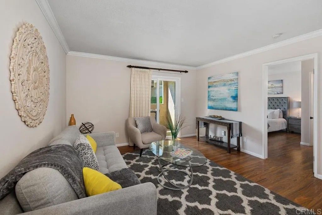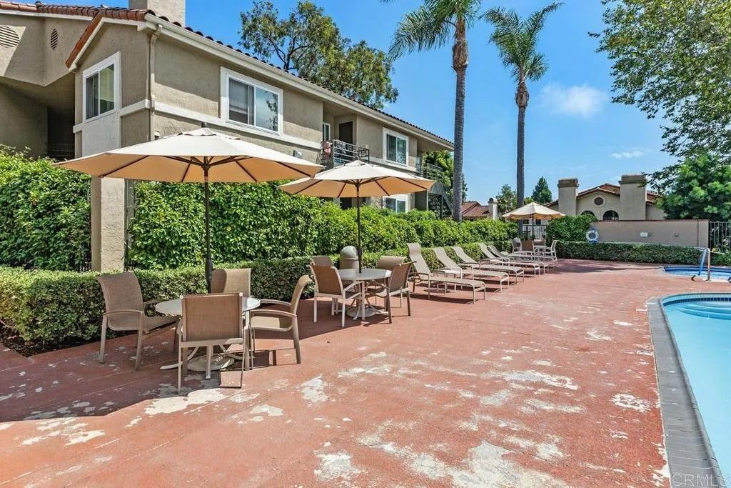 Luxurious Corner Unit Verano Condo Resort-Style Living with Exquisite Upgrades in the Heart of La Jolla Colony Step into sophistication and comfort with this stunning corner, Mediterranean-style end unit, perfectly positioned in the highly sought-after Verano community of La Jolla Colony. This bright, ground-level home combines elegant design, modern upgrades, and resort-inspired amenities all just moments from the very best that La Jolla has to offer. From the moment you enter, youll be greeted by an open, light-filled floor plan enhanced with beautiful crown moldings, rich wood flooring, and dual-pane windows that invite in natural light from multiple directions. The spacious kitchen flows seamlessly into the living and dining areas, creating the perfect space for entertaining or relaxing in style. The beautifully renovated bathrooms are a rare find in this community thoughtfully redesigned with high-end fixtures, custom tilework, and spa-like finishes that elevate your daily routine into an experience of luxury. The generous primary suite offers a large walk-in closet and a serene sense of retreat. Enjoy your morning coffee or unwind at sunset on your private patio, surrounded by lush greenery and the tranquil ambiance of La Jolla Colony. As a true corner unit, this home offers additional privacy, fewer shared walls, and extra windows that fill every room with sunshine and fresh air. Practical comforts abound, including no stairs, a side-by-side washer and dryer, ample storage, and three convenient parking spaces two in the attached garage building and one additional on-site. The Verano community delivers a resort-style lifestyle, featuring two sparkling pools, two relaxing spas, a well-equipped fitness center, an inviting internet caf, and plenty of guest parking all surrounded by manicured greenbelts, mature trees, and peaceful walking paths. Enjoy unmatched convenience with UCSD, Westfield UTC, Rose Canyon Preserve, La Jolla Colony Park, and local dining, shopping, and fitness studios just steps away. With easy access to major freeways, Scripps, Torrey Pines, and La Jolla Shores, this location truly offers the best of coastal living. Experience a home that stands apart where refined design, exceptional upgrades, and the coveted privacy of a corner unit come together seamlessly. Dont miss your chance to own one of Veranos most desirable homes!
