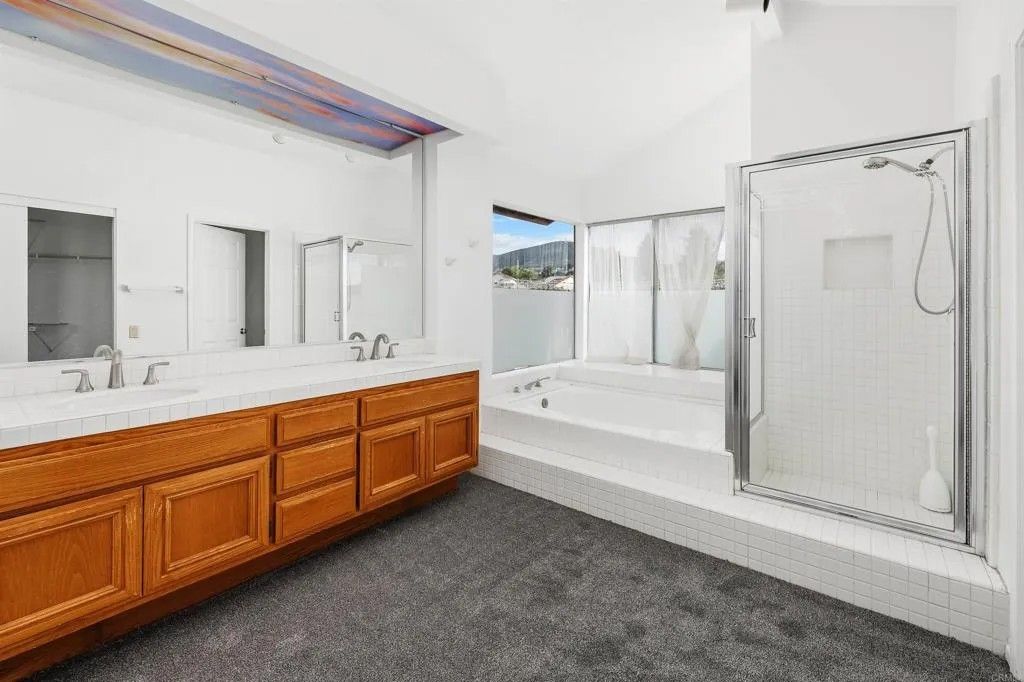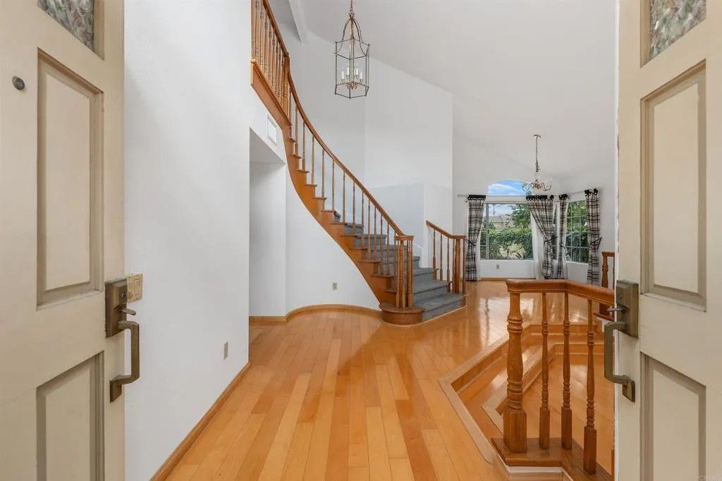 Wonderful opportunity to own in the highly sought-after Crestmont neighborhood of Rancho Peasquitos. Situated on a canyon lot, this 4-bedroom, 3.5-bath home offers a spacious, versatile floor plan with abundant potential. Features include a large kitchen with center island and full-size pantry, a separate dining room, and a generous living area ideal for entertaining. The main level includes a full bedroom and bath, perfect for guests or multigenerational living. The primary suite offers westerly views as well as views of Black Mountain, ample closet space, and cool ocean breezes. Conveniently located near shopping, schools, and freewaysjust 15 minutes to the beach! And....PAID SOLAR!!