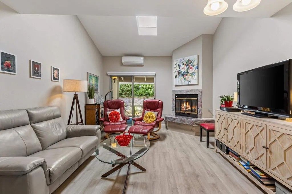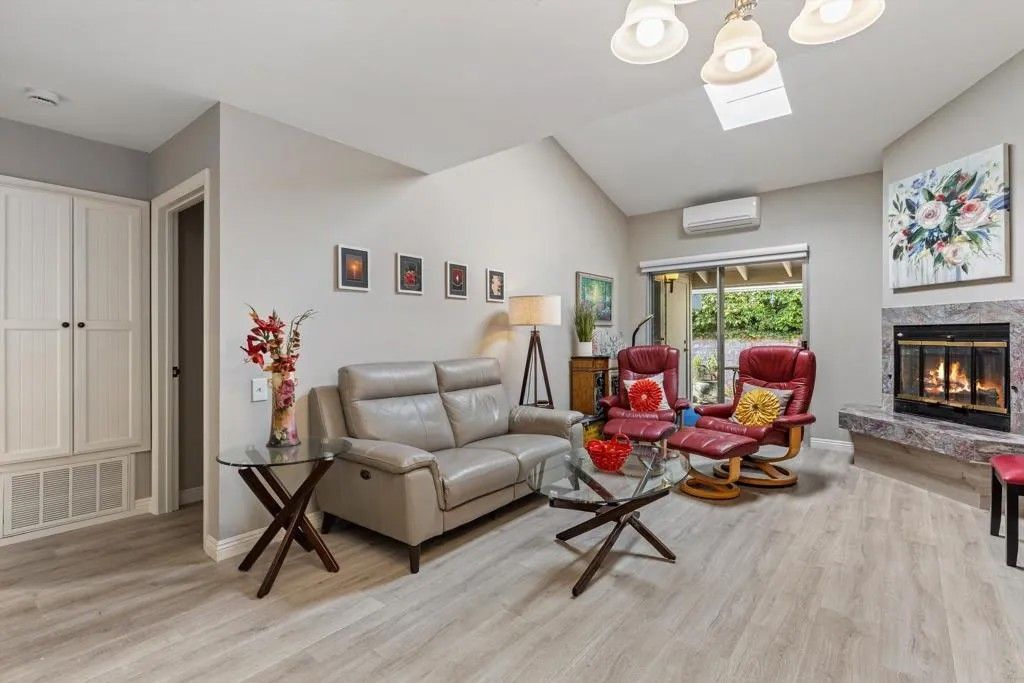 Luxurious independent retirement living at it's best! Ground level, highly desirable single level one bedroom condo with vaulted ceilings and secluded courtyard right outside your front door. Upgrades include your own laundry (not available in other one bedroom condos), skylight, newer flooring and paint, and split zone HVAC. Chateau Lake San Marcos is a must see if you're looking for exceptional services, profession/caring staff, beautifully maintained grounds and gourmet meal dining. Monthly HOA fee is for one resident and includes: one meal credit per day, all inclusive transportation, biweekly housekeeping, linen service, water, trash, free scheduled transportation, concierge assistance, onsite exercise classes, fitness center, putting green, and access to all Lake San Marcos Community Association clubs, events and activities. Additional resident is 865.00 per month. Participate in coordinated activities and the resident controlled homeowners association as you want. Complex is gated and has nighttime security. Other community amenities include: dog park, lap pool/spa (heated year round), large covered patio area for gatherings, library, computers with internet access and fireplace lounge in the entry to the recently remodeled community center. Events are published monthly or you can tune into the Chateau's own cable television station. Come visit CLSM if you're looking for a great place to live, wonderful neighbors, fun activities in a well maintained, beautiful community. Come and see for yourself what Lake San Marcos has to offer - several local restaurants within walking distance, two golf courses and a walking path along the lake.