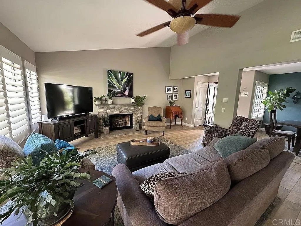 Welcome Home to this perfect gem located near one of the community's 2 Pools and 3 spas. The lot has separately fenced front and back yards. Great community for shady walks. 5 min to I-15 or Hwy 76. Quiet covered patio overlooking Pala Mesa Golf Course. High ceiling and Wood-look tile in Main Living areas. Beautiful kitchen with stainless steel appliances. Ceiling Fans in every room.