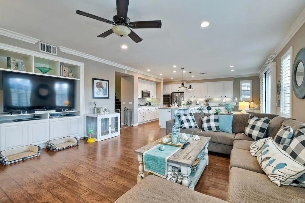 REDUCED PRICE! MOTIVATED SELLER! Exquisite Luxury Living in Harveston, Temecula Welcome to unparalleled elegance in the prestigious Harveston community of Temecula, California. This magnificent 4-bedroom, 4-bathroom residence spans 3,675 square feet, making it the largest and most luxurious home in the development. Built in 2006 and thoughtfully upgraded, this two-story masterpiece blends modern sophistication with family warmth. A custom front porch with stately pillars and ambient LED lighting greets you. Inside, soaring 9-foot ceilings on both levels (a rare feature in this community) and expansive, naturally lit interiors await. Freshly painted walls, rich laminate wood floors, elegant crown molding, and wood shutters on 38 rescreened windows enhance the home's charm. The recently remodeled gourmet kitchen boasts top-of-the-line new appliances, pull-out drawers in custom cabinets, and new LED lighting. Adjacent are the upgraded pantry and laundry room. The open-concept design connects the kitchen to a spacious family room with a built-in entertainment system and cozy gas fireplace. A formal dining area awaits special occasions. Upstairs, retreat to the luxurious master suite featuring a huge walk-in closet and custom storage with chic barn doors. The master bathroom offers upscale finishes, new LED lighting, and a new frameless shower door. Additional living spaces include a downstairs guest bedroom with full bathroom, an upstairs office perfect for remote work, a large bonus room complete with a pool table, and a downstairs den. Step outside to your resort-style backyarda private oasis designed for relaxation and entertainment. Enjoy the cocktail swimming pool and jacuzzi with an integrated firepit, custom lighting, pavers, a charming gazebo, and a built-in BBQ island. The 6,098 square foot lot includes six fruit treeslemon, white nectarine, and figoffering delightful homegrown produce. Modern conveniences abound with 20 solar panels under a transferable lease, generating 11,000 kilowatts per year at a fixed rate of $149 per month, ensuring energy savings. A whole-house fan and water filtration system enhance comfort. The three-car tandem garage features new door springs, a quiet opener, ample storage with cabinets and overhead units, and an RV 30amp hookup. Located within the highly sought-after Harveston community, HOA dues of $133 per month provide access to exceptional amenities: a sparkling pool with a new $500,000 splash zone for children, cabanas, umbrellas, spa, community clubhouse, barbecue and picnic areas, biking and hiking trails, jogging track, playgrounds, and serene sidewalks. The picturesque lake offers paddle boats and fishing, enhancing the outdoor experience. Minutes from shopping centers, gourmet restaurants, and Temecula's renowned wineries, with easy access to major highways to San Diego and Los Angeles. Families will appreciate the excellent schools within the Riverside County district. This meticulously maintained property offers more than a homeits an upgraded lifestyle. Don't miss this rare opportunity to own a piece of paradise in Harveston. Schedule your private tour today and experience the unparalleled luxury and charm of this magnificent home. Your dream lifestyle awaits.