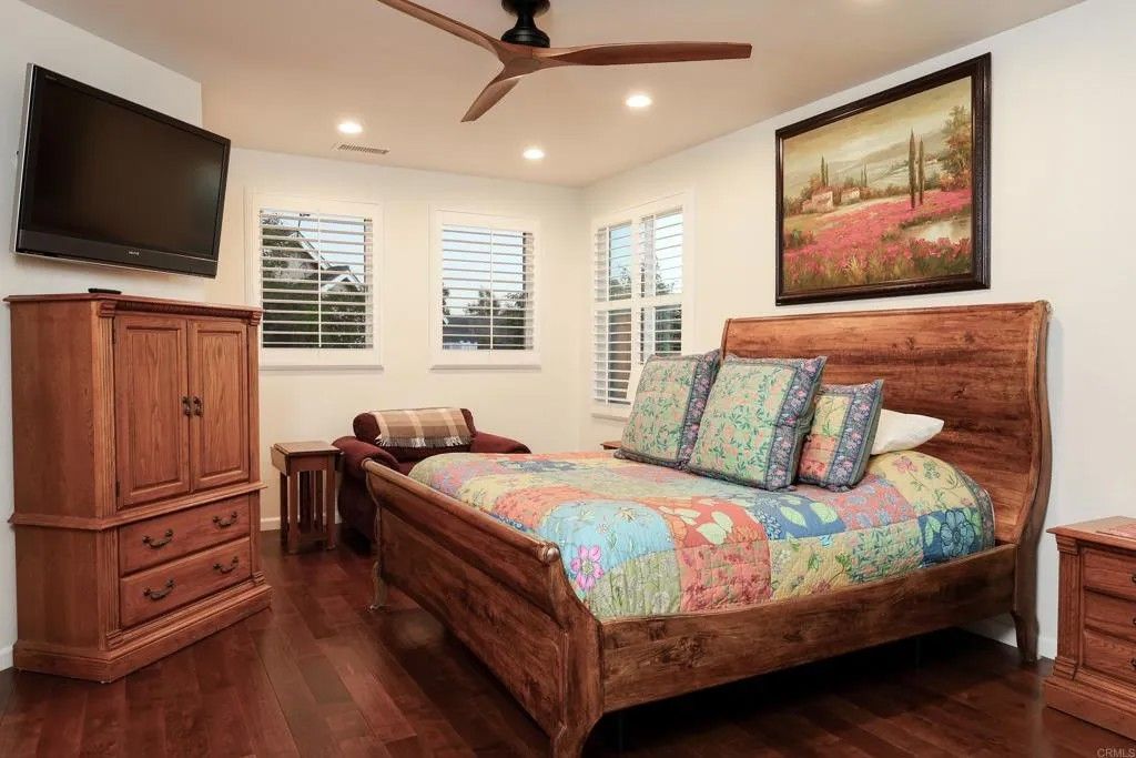 Step inside and youll immediately feel how much care and attention this home has received over the years. The expanded downstairs living space and enlarged primary bedroom create a roomy, comfortable layout that feels both functional and inviting. The kitchen features soft-close cabinetry, stainless steel appliances, and recessed lightingall working together to make daily life feel just a little easier. Plantation shutters add a classic touch, while the built-in 5-speaker surround sound in the living room brings movie nights to a whole new level. Upstairs, youll find an additional storage room, and the primary suite offers an impressively large walk-in closet that truly keeps everything in its place. Even the dining area has its own cozy fireplace, making the entire home feel warm and welcoming. The thoughtful upgrades continue outside. A 6.67kW owned solar system with 23 panels (installed in 2023) pairs with a newer roof, A/C, and furnacegiving you comfort and efficiency for years to come. The curb appeal is fantastic, with a beautifully paved driveway leading up to a garage thats just as impressive as the interior: an added storage room, epoxy flooring, and plenty of space to keep everything organized. The backyard features a convenient shed, offering even more storage solutions. Conveniently located next to plenty of shops, restaurants, freeways and in the highly sought after Poway School District. This is the kind of home that doesnt come around oftenmeticulously maintained, upgraded in all the right ways, and truly loved. Its one you wont want to let pass you by.