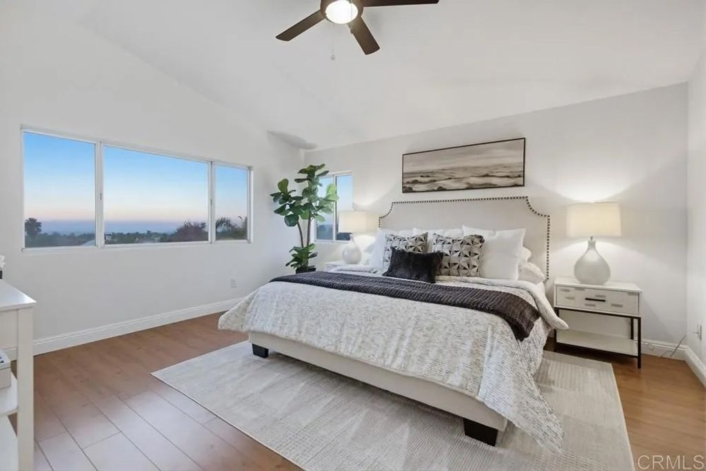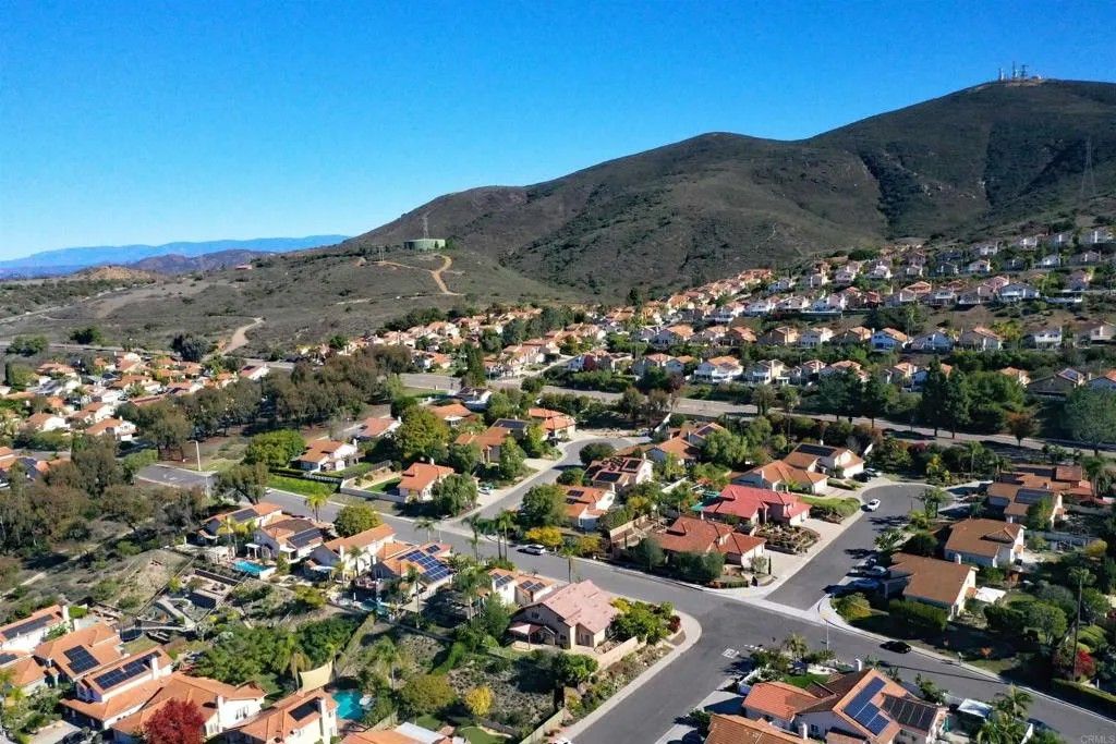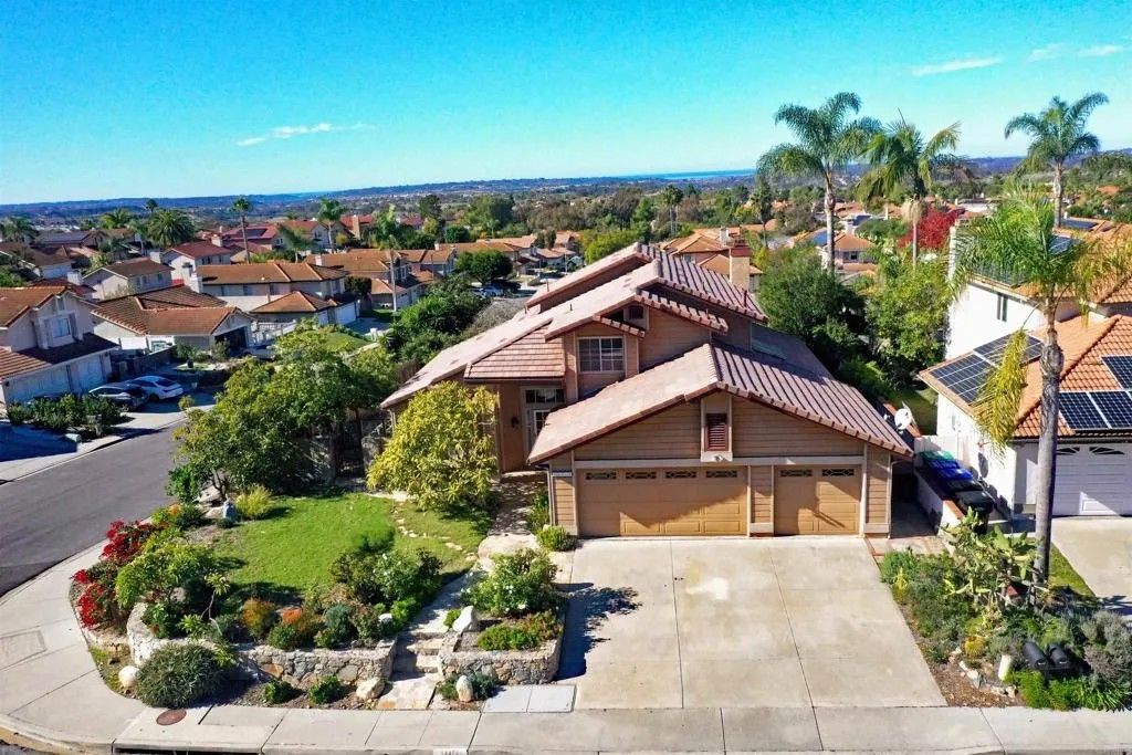 Location, location! Welcome home to this spacious 5 bdrm, 4 bath Rancho Peasquitos home! Ideally located within walking distance to top-rated Poway schools, including Adobe Bluffs Elementary, a National Blue Ribbon School offering a Dual Language Mandarin Immersion program, as well as Black Mountain Middle and Westview High. This flexible floor plan features 2 rooms and 2 full baths on the main level, including an en-suite bedroom that functions like a second primary, ideal for guest quarters or multigenerational living. With potential to add an exterior door, this space could also offer a private entrance. The second main-level room works beautifully as a home office, studio, or bedroom. Additional highlights include a 3-car garage, NO HOA, and more than peek-a-boo Ocean and Sunset Views on clear days. Upstairs, the primary suite captures those same views and offers a spa-like bath retreat complete with a freestanding soaking tub. A Jack-and-Jill bedroom and bathroom complete the upper level. Situated on a desirable corner lot, the outdoor space features mature landscaping, multiple fruit trees (lemon, avocado, pomegranate, peach, lime, and guava), and flagstone pathways and patio. A covered backyard patio provides an inviting setting for outdoor dining while enjoying sunsets and even occasional hot-air balloon views. Outdoor enthusiasts will appreciate proximity to Black Mountain hiking trails, Adobe Bluffs Park, and convenient access to the beach. Notable upgrades include a newer roof (2024), tankless water heater (2023), and fresh interior paint. Look no further, this home offers space, flexibility, and an unbeatable location!