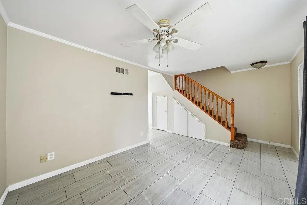Well-maintained 2-bedroom, 1.5-bath townhome located in a quiet El Cajon gated community. This light and bright end unit features tile flooring throughout the downstairs and carpet upstairs, central heating and air conditioning, and in-unit laundry room with washer and dryer. The spacious living area flows into the dining space and kitchen, which is equipped with stainless steel appliances, including a refrigerator, range/oven and wine refrigerator. Both bedrooms are located upstairs with a shared full bathroom, while a convenient half bath is located on the main level. Enjoy outdoor living in the private, gated patio with low-maintenance turf, ideal for relaxing or entertaining. Assigned parking included. HOA covers water, trash, and common area maintenance. Conveniently located near shopping, dining, and freeway access an excellent opportunity for first-time buyers or investors.