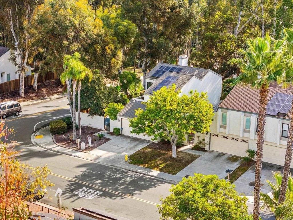 Tucked beside the peaceful Shepherd Canyon, this detached Villa Antigua residence offers the rare feeling of living within naturewithout giving up central San Diego access. Set on a large corner lot and surrounded by mature trees and canyon views, the home gives the felling of living in a tree houseelevated and quietly removed from the pace of the city. A waterfall and pond at the entry set a peaceful tone, while the secluded backyard ifsframed by parkland. Hiking and walking trails are just moments away, making it easy to step directly into nature, yet freeway access remains effortless for commuting in any direction. Inside, the home has been thoughtfully upgraded to support comfortable, modern living. The upgraded kitchen features granite countertops, LG appliances, pantry, and a breakfast nook with bright windows looking out on the walled-in front yard. The primary suite is its own sanctuary, complete with a fireplace, walk-in closet, private view balcony, and a remodeled bath with dual sinks and vanity with granite counters. Both the primary bedroom and the spacious secondary room enjoy private balconies, further reinforcing the indoor-outdoor connection. The oversized second bedroom has been used as a TV room and offers exceptional flexibility for work-from-home, guests, or multi-purpose living. Behind the scenes, the home delivers peace of mind as well. Recent upgrades include all new dual-pane windows, an owned Enphase solar system, new electric central heating & air with a high-efficiency heat pump, newer water heater, and updated fencing to preserve privacy throughout. Energy costs are minimized while comfort is maximized. This is a home for buyers who value nature, privacy, and practicalitywho want to feel tucked away in something special, yet remain close to everything that matters.