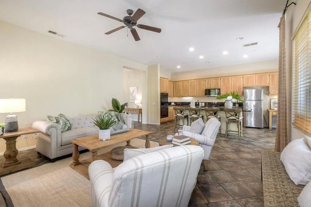 Beautiful neighborhood with a country feel. Elegant mediterranean styled home with a finished stucco wall surrounding the home for privacy. Tropical landscaping and spacious yard. Open chef's kitchen with center island and natral light. High ceilings open floor plan. Slate porcelain flooring throughout. Huge primary suite with walk in closet fit for a king and queen; brand new carpeting.Separate shower and huge tub with dual vanities & Separate make up station. The other 2 large bedrooms are separated by a jack and jill bathroom. Coastal breezes. No mello Roos and low HOA Dues $600 a year only. freeway access near by. Unique curb appeal with mature landscaping and fencing. 3 car garage woth Room for RV (if behind a fence) and multiple vehicles on the double wide concrete driveway. Solar for saving on energy!