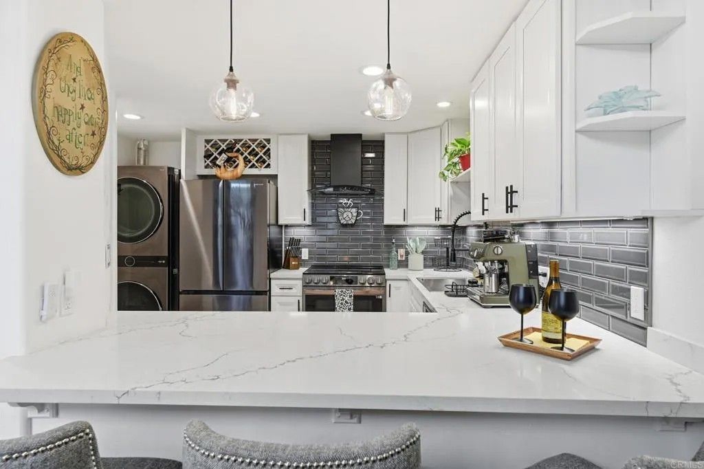 Welcome to Eastlake Shoresone of Eastlakes original and most sought after neighborhoods, and best of all, no Mello Roos. This bright corner residence has been thoughtfully reimagined, showcasing a fully remodeled, open concept kitchen with top tier appliances, sleek new countertops, and a generous breakfast bar. The inviting living area is filled with natural light, creating a warm, modern atmosphere that feels instantly welcoming. Step outside to your private, east facing patio, surrounded by lush greeneryan ideal extension of your living space and the perfect setting for morning coffee or relaxed outdoor gatherings. Enjoy the comfort and convenience of beautifully updated bathrooms, new flooring throughout, a brand new water heater, and a 2022 AC and furnace installation complete with new ducting. The laundry area has been smartly relocated to the first floor and includes a newer stackable washer and dryer. A striking spiral staircase leads to the loft style primary suite, where vaulted ceilings and an oversized window with wood shutters create an airy, elevated retreat filled with natural light. Residents of Villa Martinique enjoy an exceptional location near SR 125 and directly across from a scenic man made lake with paddle boating available. The vibrant Eastlake master planned community offers an array of amenities, including a beautiful lagoon, peaceful walking trails, multiple swimming pools, clubhouses, tennis and basketball courts, playgrounds, and moreall within close proximity to schools, shops, and dining.