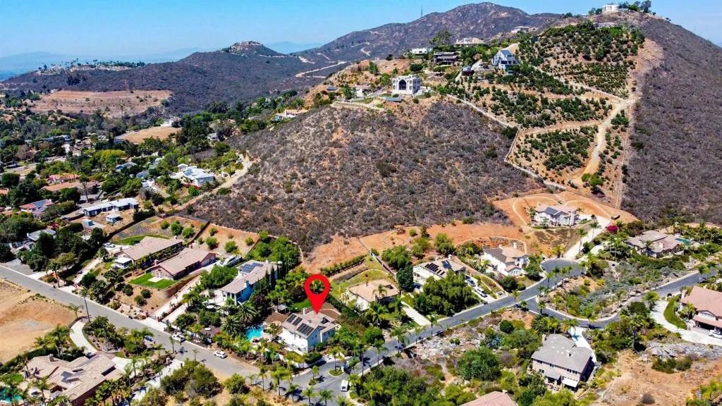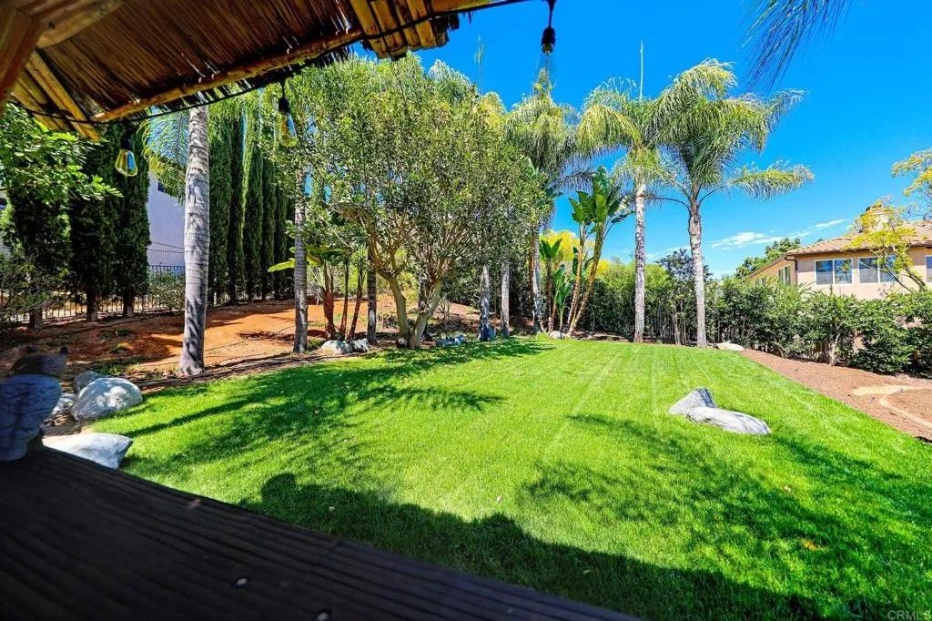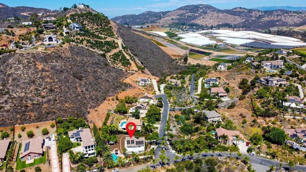 Value Opportunity! Resort Style Home with Spectacular Tropical Oasis Yard. Tucked Neatly behind Gated Entry in the Prestigious Enclave of Vista Grove Estates. 5 Spacious Bedrooms all with Views of the Surrounding Hills and Mountain terrain! Breathe and breathe again in this Peaceful setting. Serene Living is what this Home Boasts! A nearly 3/4-acre lot provides Ample usable space to roam whether it be Gardening, relaxing around the Stunning Solar Heated Salt water Pool with Spa and Water feature, or seeking shade in the Tiki Hut, and swinging in a hammock in the Large Grassy area. Numerous Fruit trees in the upper portion of the yard yield citrus, pomegranate, lemon, avocado and more! Gorgeous Palms surround the pool along with numerous other Foliage to provide a Majestic Resort Feel. Newer 9' wide Luxury Vinyl Wood Plank Flooring throughout Home gives a modern rustic feel. Huge Kitchen with Island opens to large Family Room perfect for entertaining! Formal Living and Dining room accentuate the Entry! 2 Fireplaces. Large Patio off Kitchen area is great for quiet mornings with coffee and breakfast! 3 Car Garage and additional long driveway allow for 6 more car spaces. Come take in this Idyllic, Peaceful Setting while still only 20 minutes to the Beach!