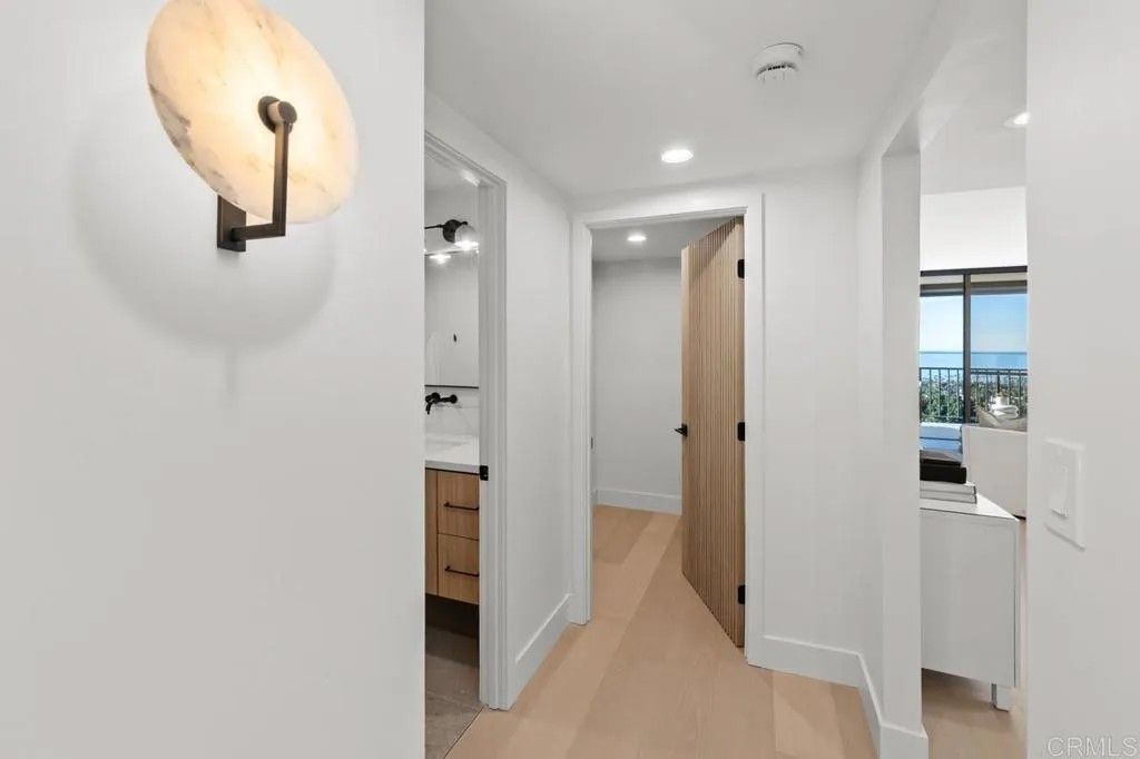 Wake up to endless blue horizons and golden sunsets in this light-filled, corner residence with sweeping ocean views from nearly every room. Thoughtfully reimagined from top to bottom, the condo showcases wide-plank hardwood flooring, designer lighting, elegant fluted doors, built-in closet, and beautifully crafted custom cabinetry throughout the kitchen and baths. The kitchen features a waterfall quartz countertop with bar seating, perfect for morning coffee or evening gatherings. Step outside to the spacious tiled balcony, complete with electric shades, and let the ocean breeze and panoramic views set the mood. A new HVAC system with Nest control ensures comfort at the touch of a button, while the serene primary suite offers full-height windows and electronic shades so you can enjoy the view without ever leaving bed. Located on the 11th floor of Shore Tower, this resort-style community delivers an elevated coastal lifestyle with an elegant lobby, fitness center with sauna, tennis courts, pool and spa, guest suites, BBQ area, on-site management, security, and ample guest parking. The home includes two assigned parking spaces plus a full-height storage cabinet, an added luxury by the coast. Perfectly situated near La Jolla Shores, the Village, UCSD, and major freeways, this is an ideal primary residence or dreamy coastal retreat for anyone who loves ocean air, open views, and effortless living.