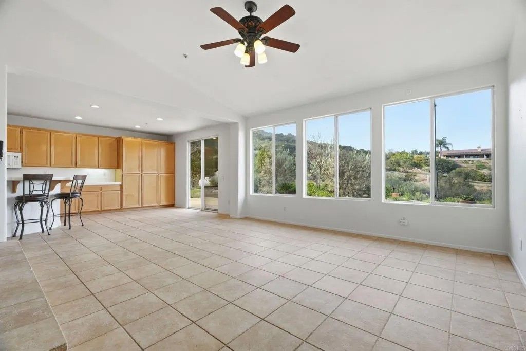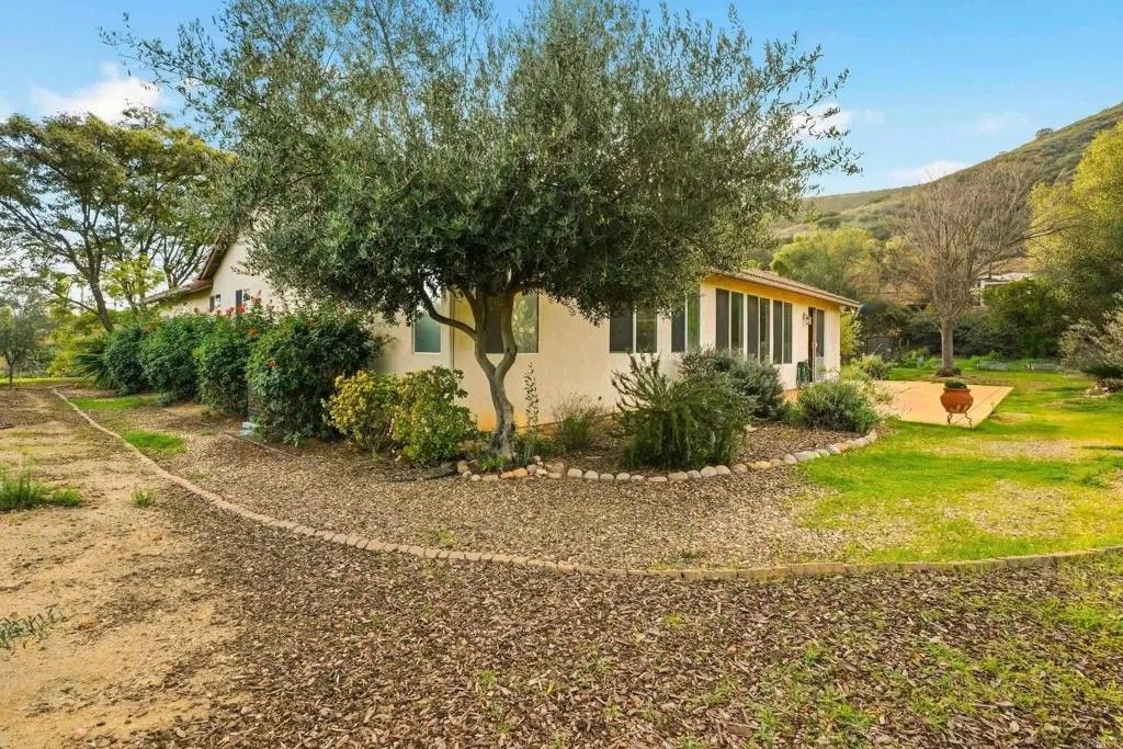 Welcome to this beautiful SINGLE STORY 3 bed 2 bath home located in the coveted Rancho San Vicente community in Ramona. Situated on a generous .68-acre lot at the end of a quiet cul-de-sac, this property offers breathtaking north and east-facing views and a peaceful, tucked-away setting. Inside, youll find an open and inviting floor plan featuring tile and acacia wood flooring, a spacious primary suite with a walk-in closet & soaking tub, stainless steel appliances, office nook, and a reverse osmosis system. The home also boasts a brand-new A/C unit paired with an Ecobee smart thermostat for year-round comfort and efficiency. Step outside to enjoy a true gardeners paradise, complete with mature fruit trees including pear, olive, fig, orange, pomegranate, and grapevines. Raised garden beds provide ample space to grow whatever your heart desires, along with a fenced side yard offering additional flexibility and privacy. This property truly is a rare gemcombining comfort, space, and serene surroundings but still a close proximity to the heart of town.