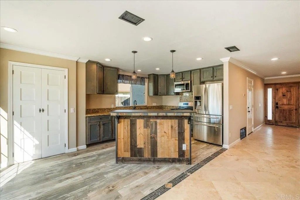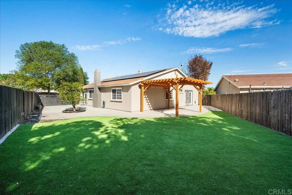 Welcome to this beautifully updated single-story home, ideally situated at the end of a quiet cul-de-sac in the heart of Fallbrook. Thoughtfully redesigned and extensively upgraded since its last sale, this home now offers a spacious 3-bedroom layout, highlighted by an expanded primary suite with French doors opening directly to the backyard, a true indoor-outdoor retreat. Inside, enjoy brand-new luxury vinyl plank flooring throughout, complemented by fresh interior and exterior paint and abundant natural light. The home features fully remodeled bathrooms with striking tile work, upgraded fixtures, and spa-inspired showers. The kitchen showcases granite and slate countertops, stainless steel appliances, and a functional layout ideal for everyday living and entertaining. Step outside to a private, low-maintenance backyard designed for relaxation and gatherings, complete with lush turf, mature landscaping, a custom pergola-covered patio, and ample space to entertain or unwind. Additional upgrades include a paid-off solar system, epoxy-coated garage floors, updated lighting, and a well-utilized lot that maximizes both privacy and usability. This is a truly turnkey property offering comfort, style, and efficiency perfectly positioned in a peaceful neighborhood with convenient access to shopping, dining, and all that Fallbrook has to offer. Key Features & Upgrades: - Reconfigured from 4 bedrooms to an oversized 3-bedroom layout - Expanded primary suite with French doors to backyard - Completely remodeled bathrooms with designer tile & modern showers - Quartz countertops in bathrooms - Granite & slate countertops in kitchen - New luxury vinyl plank flooring throughout - Fresh interior & exterior paint - Paid-off solar system - Epoxy-coated garage flooring - Custom pergola-covered patio - Private, usable backyard with turf & mature trees - Quiet cul-de-sac location
