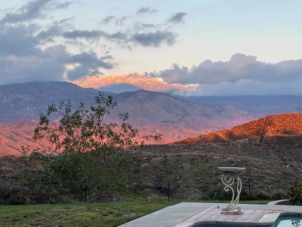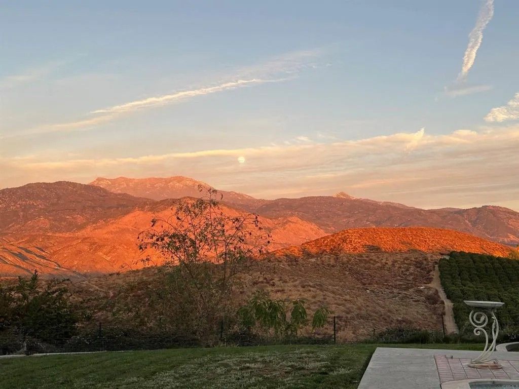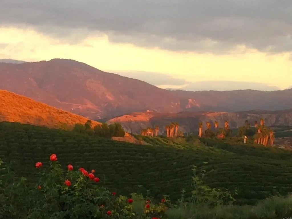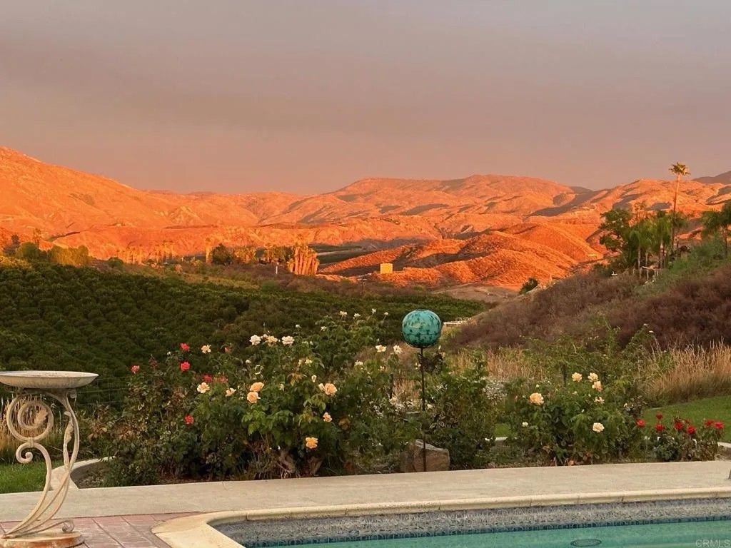 21 acres behind the house also for sale. Offered for the first time ever, this one-of-a-kind custom home captures sweeping, unobstructed mountain and valley views from its privately situated hillside setting. The approach alone is unforgettableyou drive through beautiful orange groves, a true nod to classic California living, before arriving at this serene and private retreat. Enjoy breathtaking panoramas of the San Jacinto Mountains, San Bernardino Mountains, and the San Gabriel and Santa Susana rangesalong with rolling hills, orchards, and the natural beauty of the valley floor below. The orientation of the home provides spectacular sunrises and glowing sunsets, creating an ever-changing landscape of color and light. Lovingly cared for by its original owner, the home has been meticulously maintained and thoughtfully designed with both comfort and functionality in mind. Abundant storage, new carpet, and a beautifully flowing layout make it instantly inviting. At the center of the home, a dramatic atrium floods the interior with natural light and creates a seamless connection between the living spaces. A striking formal living room showcases exposed wood-beam ceilings, a wall of arched windows, warm natural light, and a built-in wet bar with sinkperfect for entertaining. The formal dining room captures incredible mountain views, elevating every meal. The spacious kitchen features a large center island, warm wood cabinetry, generous storage, walk in pantry, desk area, abundant light, and a cheery breakfast nook ideal for morning coffee or casual meals while enjoying the views. The large family room, anchored by a cozy fireplace, offers an inviting space to unwind, while a charming library provides a quiet retreat for reading, work, or reflection. Each room feels distinct yet cohesive, balancing openness with intimacy. Step outside to your own private oasis. The sparkling pool and expansive patio overlook some of the most dramatic scenery in the regionmountains, orchards, and untouched natural landscapes that shift beautifully with the seasons. Beyond the patio, a spacious grassy area offers even more possibilitiesperfect for yard games, outdoor gatherings, or as an ideal location to add an ADU. For garden lovers, the property is a dream, featuring dedicated potting areas and an abundant collection of mature fruit trees including Meyer lemon, Navel orange, Valencia orange, and Eureka lemonbringing color, fragrance, and fresh citrus year-round. Adding even more versatility is a bonus space located downstairs in the garage area, complete with a large room with closet, a convenient half bath, an office or workspace, and additional storage rooms. Ideal for a home office, gym, hobby studio, or guest overflow, this flexible space expands how the home can live and function. With its custom design, thoughtful functionality, meticulous care, exceptional outdoor spaces, and extraordinary sweeping viewsthis cherished property presents a rare opportunity to own a truly special home making its market debut.