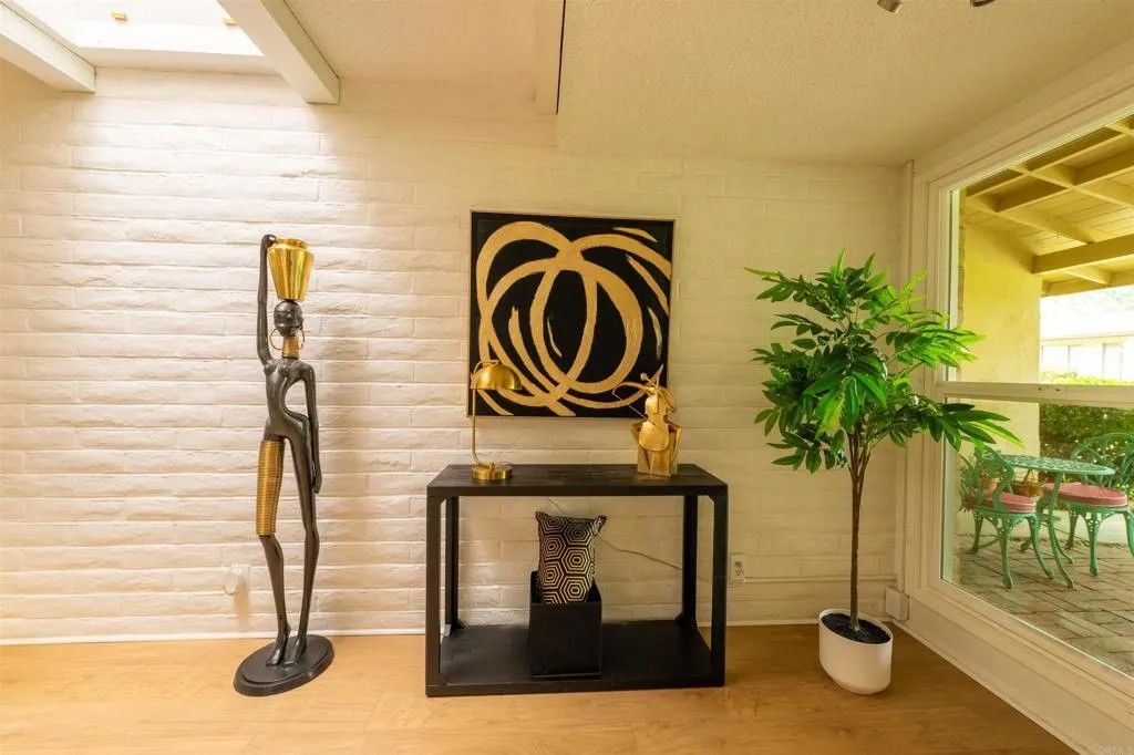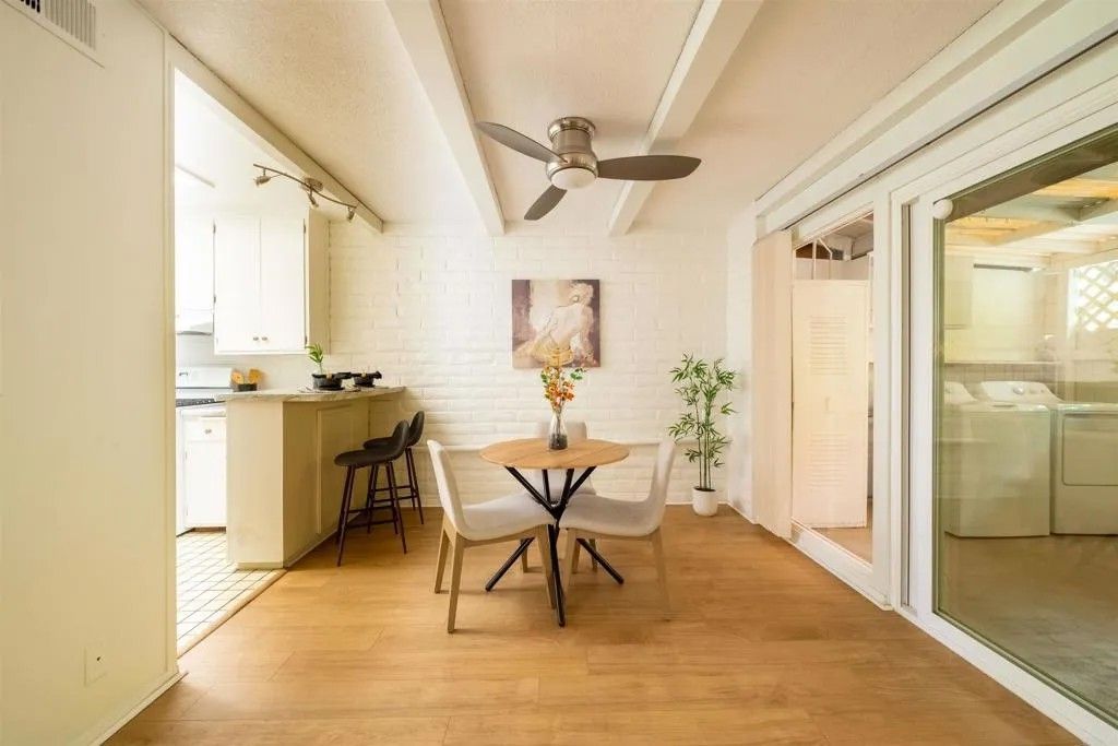 Welcome to this nicely refreshed 1-bedroom, 1-bath condo in the highly sought-after Grossmont Village community of La Mesa. Offering 740 square feet of comfortable living space, this home is ideally positioned within a serene, park-like setting featuring expansive greenbelts, mature trees, walking paths, a sparkling pool, and clubhouse. Recently updated and move-in ready, the interior has been freshly painted throughout and showcases newer light wood-tone LVP flooring that enhances the homes bright and airy feel. The spacious living area opens seamlessly to a large enclosed patio through a dual-pane 6-panel slider, creating flexible indoor-outdoor living spaceperfect for relaxing, entertaining, or a home office setup. The patio also includes a convenient in-unit washer and dryer. The bedroom is generously sized and filled with natural light from large windows overlooking the lush greenbelt, offering peaceful views and a tranquil atmosphere. Dual-pane windows throughout provide added comfort and energy efficiency. Additional highlights include a roof replaced by the HOA last year, an assigned covered carport space with storage, and a permit for a second vehicle in the open parking area. Enjoy resort-style living in a beautifully maintained community, all conveniently located near shopping, dining, and public transportation. An excellent opportunity for first-time buyers, downsizers, or investors seeking value in a quiet, well-kept community.