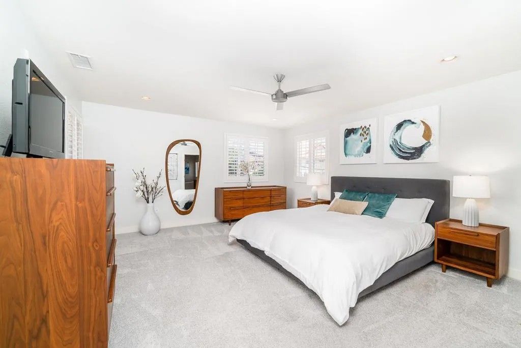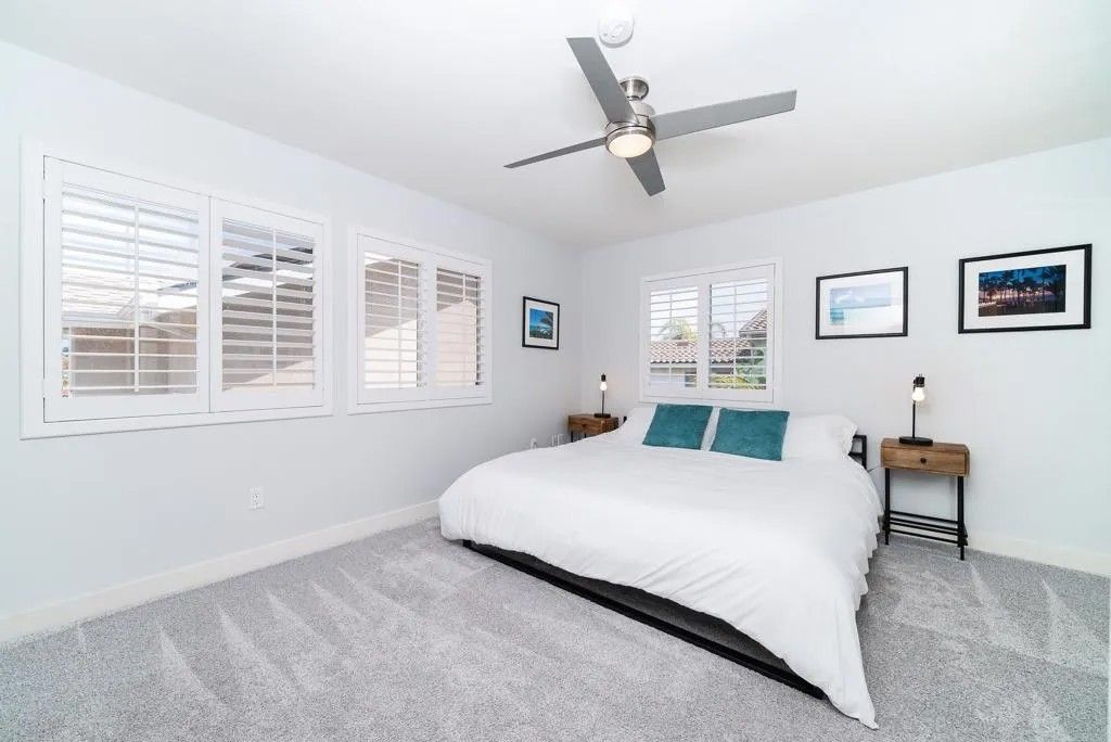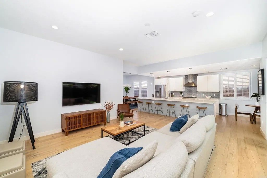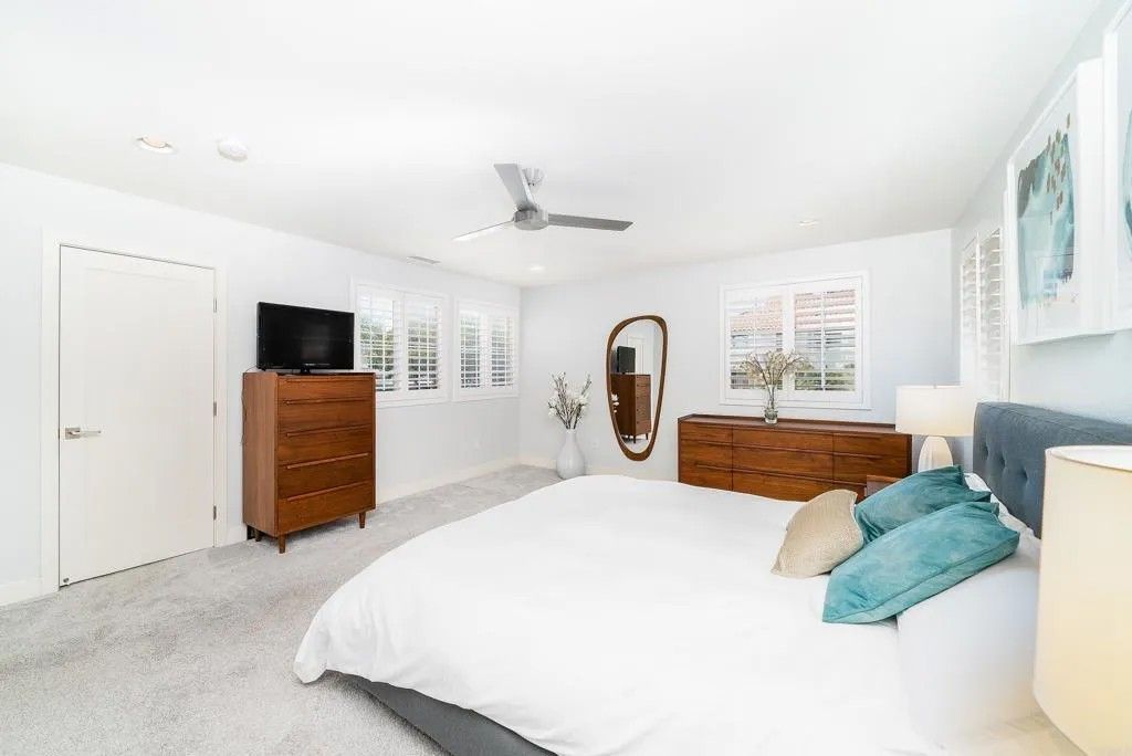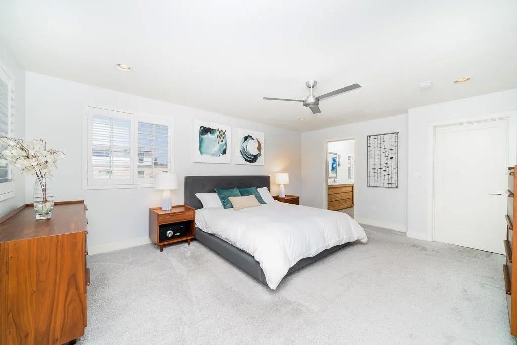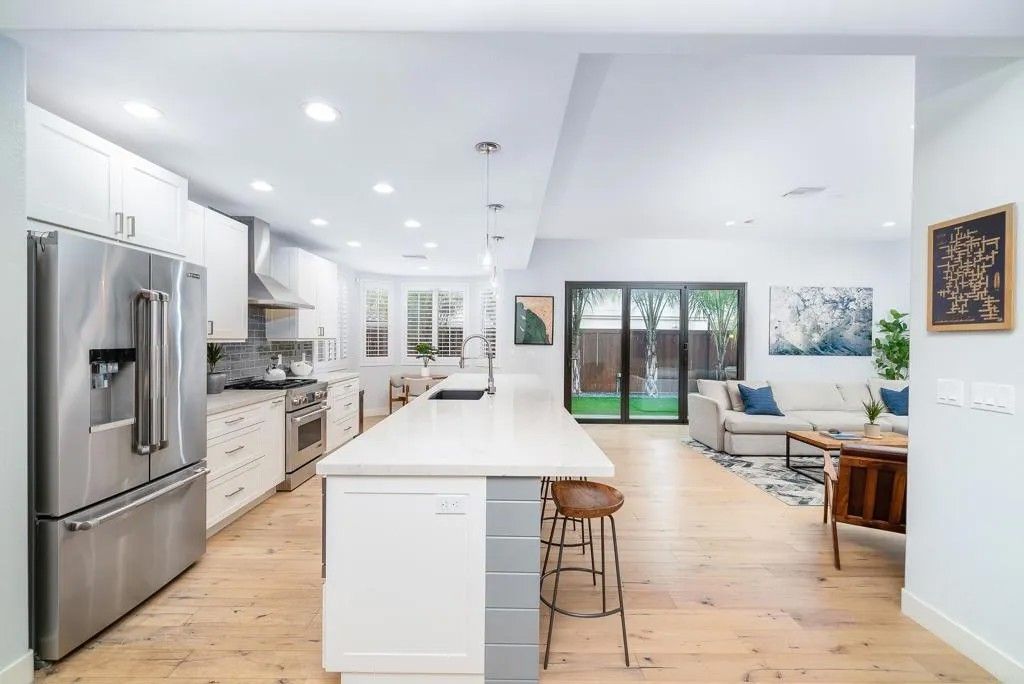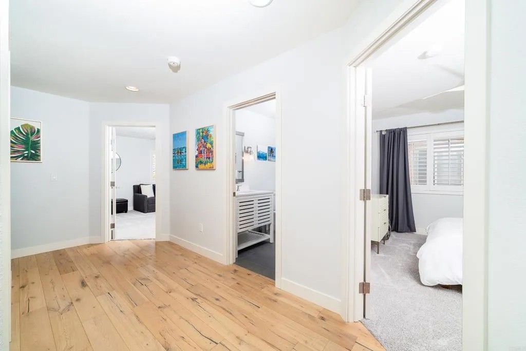 Experience the essence of refined coastal living just moments from the shoreline in Carlsbad - where ocean air, walkability, and elevated design converge. This fully remodeled 4-bedroom, 3.5-bath residence is a study in thoughtful craftsmanship and understated luxury. Inside, wide-plank white oak floors set the tone for a warm, modern aesthetic, complemented by custom details and curated finishes throughout. At the center of the home, a stunning chefs kitchen invites gathering and connection. A dramatic 14-foot quartz island anchors the space, paired with sleek custom cabinetry and premium appliances - perfectly balancing beauty and performance. The homes open-concept design flows effortlessly through expansive living and dining spaces, culminating in a panoramic door system that dissolves the boundary between indoors and out. Step into a private outdoor space, complete with stone pavers and turf - designed for effortless entertaining or quiet moments under the coastal sky. The primary suite offers a true sanctuary, featuring a spacious walk-in closet and a spa-inspired bath with a freestanding soaking tub, frameless glass shower, and elegant Restoration Hardware finishes. Perfectly positioned near the beach and just minutes from Carlsbad Village, this home offers a lifestyle defined by morning surf checks, sunset strolls, and effortless access to dining, shopping, and coastal trails. A rare opportunity to own a turnkey coastal retreat in one of North Countys most sought-after locations.