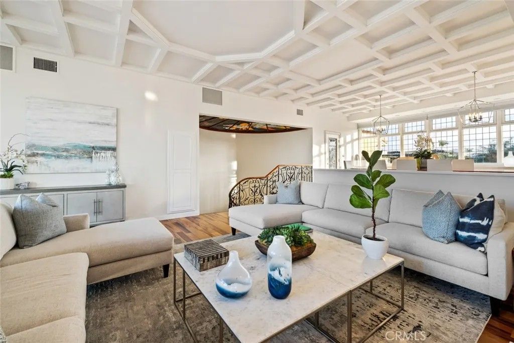 Welcome to 218 Evening Star Lane, an exceptional bay front retreat nestled in the heart of Newport Beachs prestigious Dover Shores. Positioned on a generous lot with 60 feet of prime bay frontage and a private dock, this stunning resort-style residence captures the essence of California coastal living. Designed for both relaxation and grand entertaining, the home spans approximately 4,500 square feet and offers 5 bedrooms, 3.5 bathrooms, and a rare four-car garage. Inside, expansive water views take center stage, especially from the upper-level great roomfeaturing multiple fireplaces, a formal dining area that easily seats twelve, and a climate-controlled 500-bottle wine closet. The chefs kitchen is a true showpiece, boasting Italian marble countertops, professional-grade Viking and Sub-Zero appliances, and a cozy built-in breakfast nook. Also upstairs, the luxurious primary suite opens to a large private balcony with spa and panoramic bay views. The recently remodeled ensuite bath showcases backlit exotic stone countertops and spa-inspired finishes. Enjoy the seamless indoor-outdoor flow with multiple bayside patios, an expansive upper deck, and direct access to the private dockperfect for boating or simply soaking in the scenery. Recent upgrades include new wide-plank flooring, fresh interior and exterior paint, a custom spiral staircase, and epoxy-coated garage floors. Set at the end of a peaceful cul-de-sac, the home also offers exclusive access to three private beaches and proximity to the Newport Aquatic Center, all part of the Dover Shores lifestyle. This residence is a rare opportunity to own a front-row seat to Newports iconic waterfront.