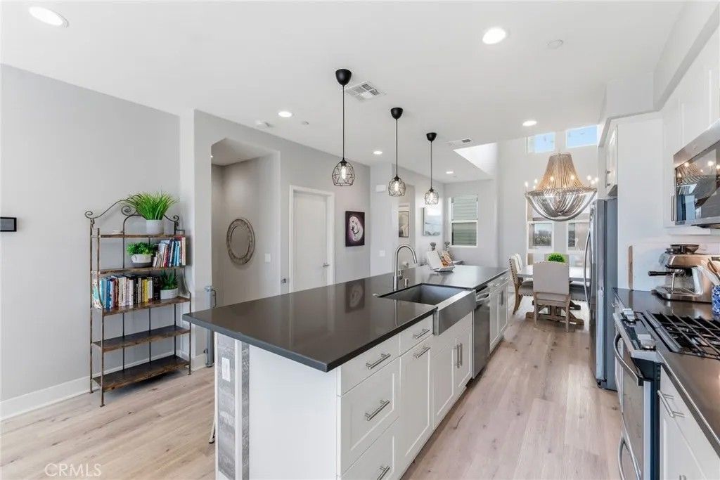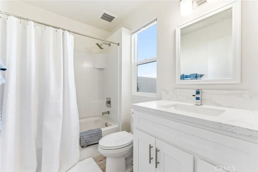 Newport Beach Schools. Four En Suite Bedrooms. One Of The Coast's Best Kept Secrets. 1650 Topanga occupies a rare position inside 17 West, one of coastal Orange County's most sought-after modern communities, and one of only a handful of units in the entire development to offer a true four-bedroom, four-and-a-half-bath configuration. Every bedroom has its own full private bath. In a community where most floor plans top out at three bedrooms with shared bathrooms, that distinction is not a minor upgrade. It changes how the home lives entirely. The layout is the result of a thoughtful remodel, and the execution shows. The entry level opens to a private bedroom and en suite bath, separate from the main living areas, equally suited as a guest room, office, or dedicated workspace. The main living floor opens dramatically: double-height ceilings in the dining area, oversized windows flooding the space with natural light, and an open-concept flow that connects kitchen, dining, and living without interruption. The kitchen is built for real use- quartz countertops, stainless appliances, a generous island, and a walk-in pantry with storage that actually delivers. Custom window treatments, designer lighting, and upgraded vinyl flooring maintain a consistent warmth and quality across every level. The third floor holds the primary suite dual vanities in the bathroom as well as a step-in shower, and generous closet space, along with a second en suite guest bedroom. The fourth floor is where this home earns its own category: a fourth en suite bedroom and full bathroom, a versatile bonus space, and direct rooftop deck access with views toward the mountains, Fashion Island, and south towards the coast. As an edge unit, the home also benefits from additional natural light and open sight lines that interior units cannot replicate. Three distinct outdoor spaces across multiple levels complete the picture. The Costa Mesa/Newport Beach border location puts you minutes from the beach, shopping, dining, and freeway access all within Newport-Mesa Unified, served by Newport Heights Elementary, Ensign Middle School, and Newport Harbor High School. Four bedrooms. Four full baths. Newport schools. A rooftop deck. At this price point, this floor plan does not exist anywhere else in the community.