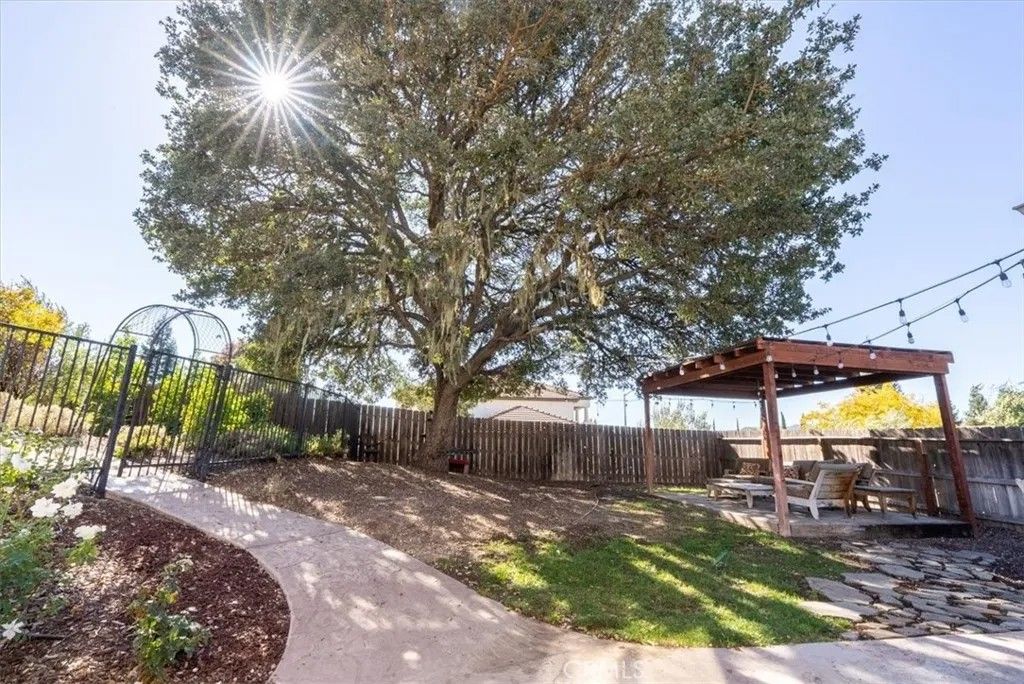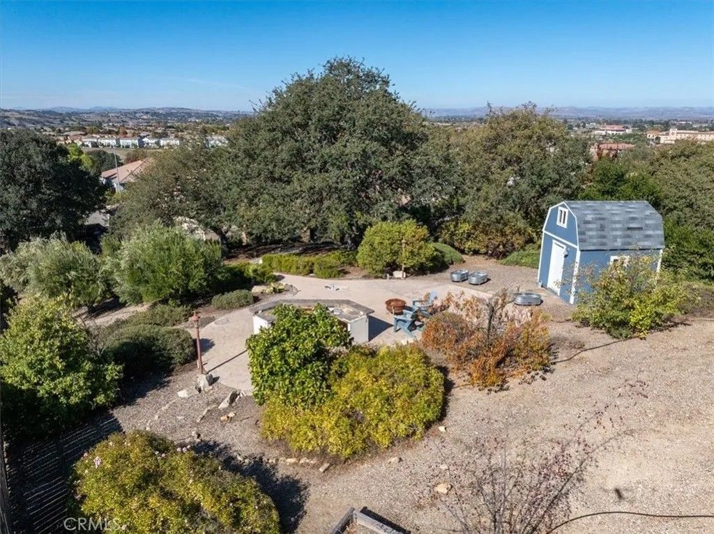 Beautifully situated in Montebello Oaks near open space and close to charming Paso Robles downtown shops and restaurants, this home captures the essence of relaxed sophistication with panoramic views and timeless farmhouse appeal. A custom hardwood front door opens to inviting interiors that include a separate den or office/artist studio, luxury vinyl flooring, recessed lighting, vaulted ceilings, plantation shutters, and a custom stair railing. The built-in bar with wine storage and refrigerator adds a touch of warmth and entertainment flair. The remodeled kitchen showcases a drop-in farm sink, stainless steel appliance package with double ovens and a five-burner cooktop, a walk-in pantry, and a message center for everyday convenience. The dining room offers built-in cabinets with glass panels, while the family room features a gas fireplace with a natural stone hearth. The powder rooms charming barn door and the indoor laundry room with washer, dryer, and drop-in sink enhance everyday function. The primary suite is a retreat with dual sinks, a large walk-in closet with custom built-ins, a beautifully tiled oversized shower, and a soaking tub. A guest en suite opens to its own veranda, perfect for enjoying morning coffee or evening sunsets. Additional highlights include a three-car garage, tile roof, garden cottage with electrical power, raised vegetable beds, and drought-tolerant landscaping. This exceptional property blends privacy, craftsmanship, and Paso Robles charm in one captivating setting.