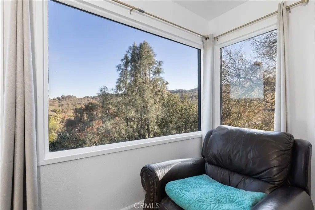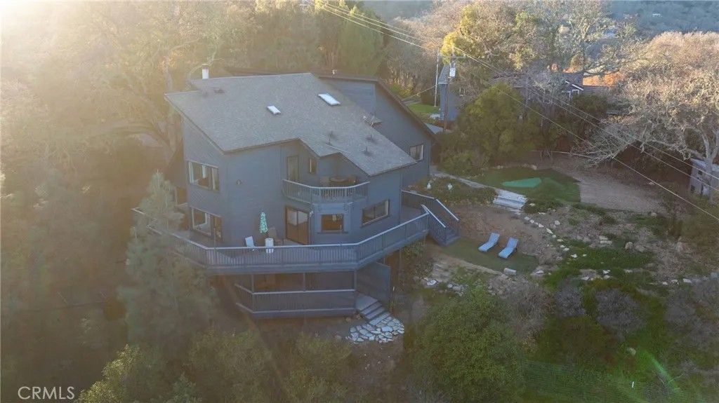 Welcome to this stunning contemporary, passive solar home set on 3.74 scenic acres, offering privacy, serenity and breathtaking views from every level. This thoughtfully updated 2769 sf residence located in the Chandler Ranch neighborhood, features soaring cathedral ceilings, clerestory windows, skylights and exceptional indoor-outdoor living. The main level offers a light-filled living room with a dramatic wood-burning fireplace, dining area and updated kitchen, ideal for everyday living and entertaining. Upper levels include three spacious bedrooms, two full recently updated baths, interior laundry and a generous loft. The primary suite is a true retreat, with an updated primary ensuite with separate tub and shower and walk-in closet. The primary suite showcases stunning panoramic views and direct access to a private balcony deck to soak in the outside. The lower level features a studio-style guest quarters with a private exterior entrance, kitchenette, living area, built-in Murphy bed and bathroom, ideal for guests, extended family or rental potential. Multiple view decks of the main living areas, guest quarters and primary suite highlight the homes exceptional setting. The property offers open usable space for gardening, play or outdoor entertaining, along with an animal shelter and fenced area currently used for hobby farming. Thoughtfully landscaped grounds include mature oaks, meandering pathways, picnic areas and drought-tolerant landscaping. Additional features include an extra-deep two-car garage with cabinetry and workbench, RV parking and a storage building. Impeccably maintained and showcasing pride of ownership, this rare property offers privacy, views, versatility and an energy-conscious passive solar design. View the Visual Tour for more details.