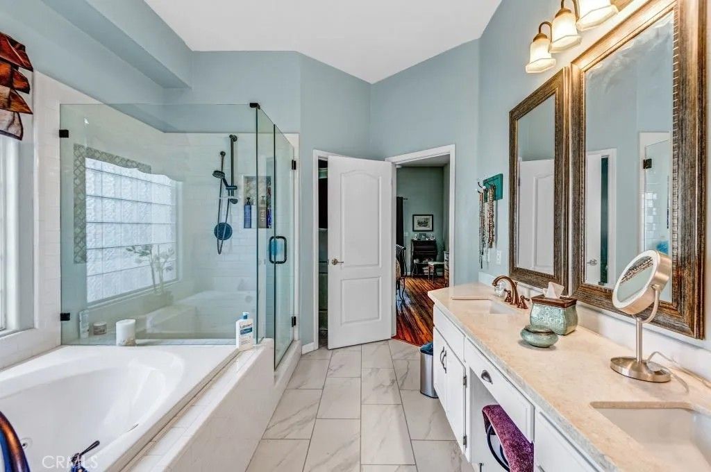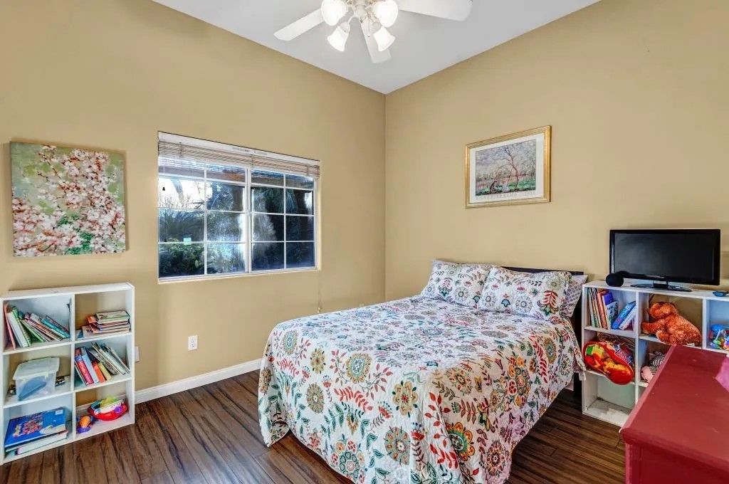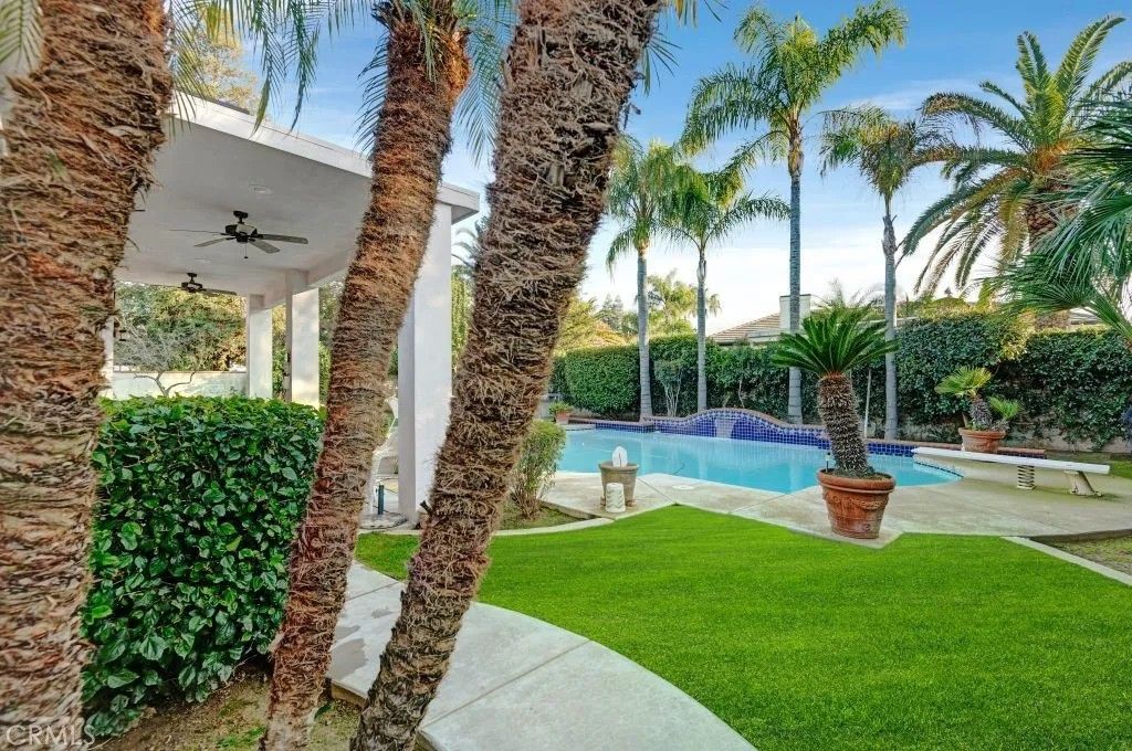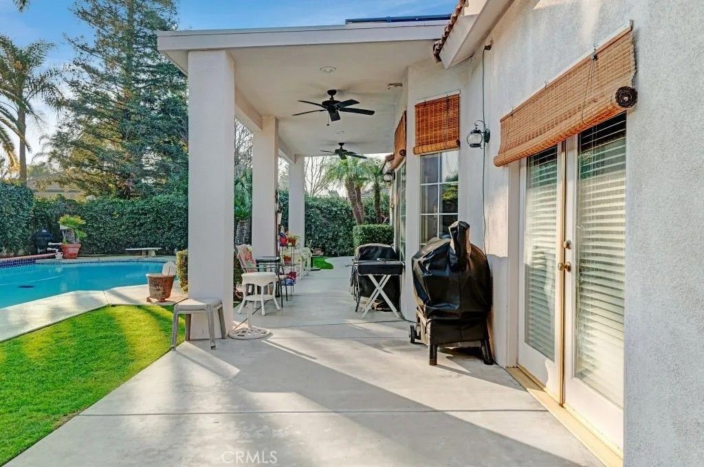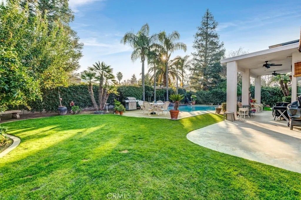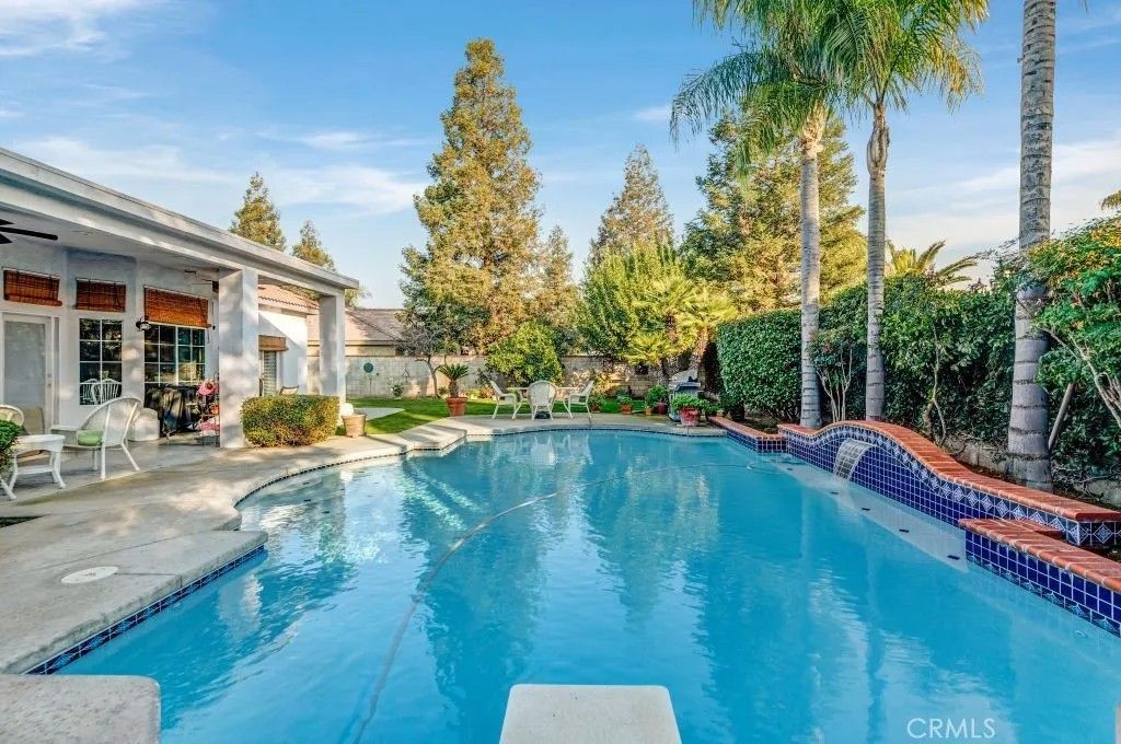 Welcome to this exceptional North Bakersfield estate offering the perfect blend of comfort, efficiency, and timeless design, highlighted by an OWNED solar system with a low true-up credit for long-term energy savings and peace of mind. Nestled in a family-friendly neighborhood, this beautifully maintained home immediately impresses with refreshed exterior paint, secure block wall fencing, and a sparkling re-plastered pool with newer equipment, creating a private retreat ideal for both everyday living and entertaining. Step inside to discover soaring ceilings, custom architectural touches, and abundant natural light that fill the home with warmth and character. The thoughtfully designed floor plan features a front dining area and first bedroom, offering flexibility for guests, a home office, or multi-generational living. The expansive great room showcases built-in cabinetry and flows seamlessly into the updated kitchen, complete with granite countertops, tile backsplash, recessed lighting, a breakfast bar, and generous storage space - perfect for hosting gatherings or casual family meals. The spacious primary suite serves as a peaceful sanctuary with direct backyard access, while the modernized bathrooms provide stylish finishes, including a guest bath conveniently positioned for poolside use. Additional highlights include a 1-year-old HVAC system for year-round comfort, a covered patio, lush grass, mature landscaping, and elegant iron gates that enhance both privacy and curb appeal. This inviting backyard oasis is ideal for summer barbecues, relaxing evenings, and creating lasting memories. Ideally located near local schools, parks, and shopping, this move-in-ready home delivers the lifestyle todays buyers are searching for. Schedule your private showing and experience this remarkable property in person.