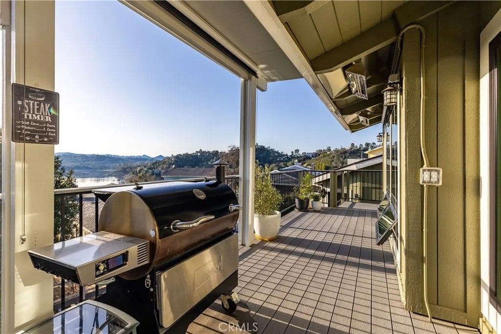 Experience a modern Lake Nacimiento City home of luxury, comfort, and resilience in this impeccably upgraded 3-bedroom home plus an art studio/office and a private basement guest suite with full bath. Thoughtfully designed with premium craftsmanship, energy efficiency, and smart technology, this property offers elevated living with beautiful lake views and breathtaking western sunsets. A new 30-year roof covers all structures, complemented by a Generac whole-house backup generator and a 500-gallon in-ground propane tank. The owned oversized solar system with EV charging provides annual energy credits. Additional upgrades include LED lighting inside & out, whole-house water filtration with UV, add'l under-sink water filtration, upgraded sewage pump, and hot water recirculation so entire home has instant hot water. New Andersen exterior doors and windows and freshly painted interiors and exteriors enhance both beauty and durability. Outdoor living features low-maintenance composite decking, custom pavers, professional hardscape, landscape lighting, and lush landscapingperfect for entertaining while taking in the lake views. The first-floor deck includes manual & motorized sun shades, outdoor electric heaters, and an outdoor-rated TV. Parking for up to six vehicles. Inside, the home showcases oak hardwood flooring throughout, a whole-house central vacuum system, and a Mitsubishi mini-split heating and cooling system. Smart-home features allow remote management of lighting, shades, and security. The chefs kitchen features Sub-Zero column freezer, wine fridge, refrigerator, andunder counter beverage refrigerator, plus a Wolf 60 dual-fuel range with griddle. The primary suite offers a custom fireplace, walk-in closet, and spa-like bathroom with custom tile, Toto washlet, radiant heated floors, curbless shower, and soaking tub. Two guest baths feature custom tile heated floors, and washlets. Motorized or manual Smith & Noble shades are installed in all bedrooms, office/ studio. Additional highlights include motorized Velux skylights in the kitchen, studio/office and garage, ceiling fans throughout, Starlink internet, remote-controlled propane fireplaces in the living room and primary suite, and wall-mounted TVs in key rooms. With sweeping lake views, spectacular western sunsets, a flexible art studio/office, and a well-appointed basement guest ed,B, this home delivers a refined blend of luxury, efficiency, and modern smart living.