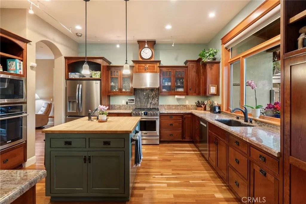 Located on the desirable West Side of Paso Robles, this custom-built 2010 Craftsman home blends thoughtful design, quality construction, and exceptional walkability just moments from downtown restaurants, wine bars, and City Park. Built with 6-inch thick interior and exterior walls, the residence offers enhanced durability, efficiency, and comfort. Inside the 2,600 sq ft main home, hardwood floors flow through the kitchen, living room, family room, and hallways, while Milgard dual-pane windows with craftsman trim bring abundant natural light. Energy-conscious upgrades include owned solar, fire sprinkler system, tankless Rinnai water heater, and fire and home security systems. The chefs kitchen showcases custom Morro Bay Cabinets, granite countertops and backsplash, a butcher block island workstation, and an impressive 23" x 104" breakfast bar. Premium appliances include two dishwashers, two ovens, refrigerator, built-in microwave, wine cooler, and trash compactor, making the space ideal for entertaining and everyday living. The primary suite retreat features a fireplace, private patio access, and a cathedral-style sunken ceiling. The spa-inspired en-suite bathroom offers a 10-foot dual vanity with seated personal vanity area. The walk-in closet features built in organization systems and is plumbed for a stacking washer and dryer inside. Additional highlights include a 650 sq ft studio ADU with full kitchen and bath, providing flexible options for guests, rental income, or multi-generational living. Outdoor living is equally impressive with a back patio featuring a wood-burning fireplace, multiple seating areas, traditional spa, and swim spa, plus convenient RV parking. A rare West Side opportunity combining craftsmanship, efficiency, and versatile living spaces in a prime Paso Robles location.