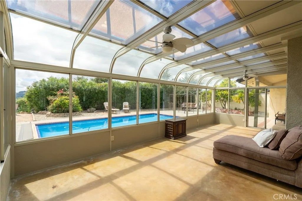 Perched atop the rolling hills of Atascadero, this immaculate 3-bedroom, 2.5-bath custom ranch estate offers approximately 3,194 sq ft on a private 5.4 acre parcel in one of the areas most sought-after locations. Surrounded by the natural beauty of the Central Coast, the property embodies peaceful, elevated living with sweeping panoramic views of oak-studded hills and open skies. Ideally located on the coveted northwest side of Atascadero, just two exits from Vineyard Drive, youre moments from Paso Robles and Templeton wine country while enjoying cooler, coastal-influenced temperatures. Designed for comfort and functionality, the home features separate family and living rooms, spacious bedrooms, and a generous primary suite with an expansive walk-in closet. The well-appointed kitchen includes a cozy breakfast area, large walk-in pantry, and ample cabinetry and counter spaceperfect for everyday living or entertaining. With no visible neighbors, the property offers exceptional privacy and a rare sense of seclusion. The sunroom provides the perfect vantage point to take in the beautiful open skies and surrounding hillside landscape. Outdoors, enjoy a park-like setting with an automated pool, mature landscaping, and a variety of fruit trees including apple, orange, persimmon, and lemoncreating a true farm-to-table lifestyle. Additional features include an attached four-car garage, separate RV garage, a substantial wine cellar with potential for conversion, and a versatile hobby room ideal for an office or creative space. Modern amenities such as a tankless water heater, water softener, central vacuum system, dual fireplaces, and an electric gated entry enhance comfort and convenience. Just minutes from downtown Atascadero yet offering complete privacy, this exceptional hilltop retreat captures the very best of Central Coast living.