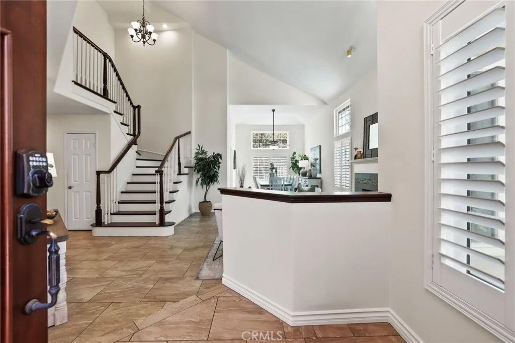 Tucked away on a private cul-de-sac in the prestigious guard-gated community of Rancho Cielo, this beautifully remodeled Brighton Glen home is where style, comfort, and serenity meet. From the moment you step through the door, you're greeted by soaring ceilings and streams of natural light across the living and dining room. Shutters frame each window, a cozy fireplace invites you to unwind,and the elegant dining space features a ceiling fan with lightperfect for gatherings. At the heart of the home lies a kitchen thats as functional as it is breathtaking. Thoughtfully redesigned, featuring crisp white shaker cabinets, luxurious quartz countertops, a charming farmhouse sink, and a spacious center islandperfect for gathering with friends or prepping a quiet dinner. Recessed lighting sets the mood, while built-in appliances add a sleek, modern touch. The kitchen opens seamlessly into the inviting family room, where tile flooring, elegant shutters, and a custom coffee bar with matching quartz counters and generous storage create a space made for connection and comfort. Downstairs also features a chic half bath with an Italian glass custom mirror and a well-designed laundry room with built-in cabinetry. Upstairs, you'll find three spacious secondary bedrooms, each withvaulted ceilings, luxury vinyl flooring, shutters, ceiling fans with lights, and mirrored sliding closet doors. The upgraded secondary bathroom boasts a double-sink vanity with white shaker cabinets, custom hardware, recessed lighting, tile floors, a tub/shower combo, and an Italian glass custom mirror. The primary suite is a true retreatspacious and serene with soaring ceilings, luxury vinyl flooring, a mirrored closet and shutters that open to your private balcony. The ensuite bathroom features a double vanity with white cabinetry, a walk-in shower with stone flooring and a built-in bench, and a walk-in closet. Step outside into your private oasis. The sparkling pool and spa are securely gated, with ample room for lounge chairs or an outdoor dining set. Enjoy year-round relaxation under the covered patio or play on the grassy areatheres room for it all. Beyond your front door, Rancho Cielo offers resort-style amenities: a community pool and spa with lounging areas, tennis and pickleball courts, basketball, a playground, lush greenbelts, and scenic walking trails. This isnt just a homeits a lifestyle.