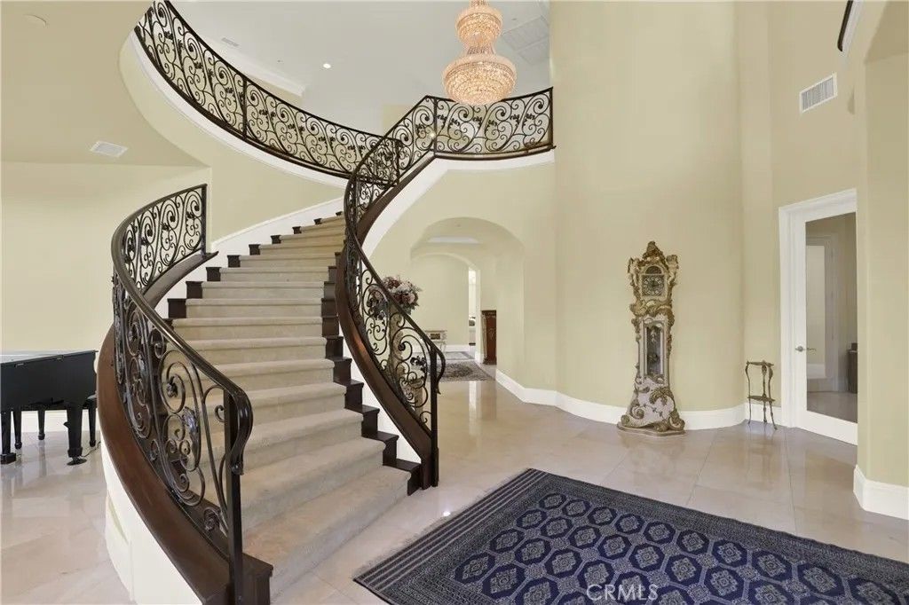 Exquisite Riverside Estate in Alessandro Heights A Private Paradise Awaits Welcome to your own piece of paradise nestled in the prestigious White Gate community of Alessandro Heights, one of Riversides most sought-after neighborhoods. Tucked just off Overlook Parkway, this grand estate offers over 8,800 sq ft of luxurious living space, plus a private casita perfect for guests or multi-generational living. From the moment you step through the front doors, pride of ownership is evident throughout. Enter into a stunning grand foyer featuring a dramatic spiral staircase, Italian marble floors, and soaring cathedral ceilings adorned with opulent chandeliers. The formal living room, anchored by a stately fireplace, flows seamlessly into the elegant dining room, both appointed with custom Italian furnishings that evoke timeless sophistication. An arched hallway leads you to the heart of the home: a massive family room with a second fireplace, built-in bar, and a sunlit breakfast nook that opens to the lush backyard. The chefs kitchen is a dream come true, equipped with dual islands, Monogram appliances, gleaming midnight sparkle granite countertops, and an abundance of custom cabinetry perfect for both everyday living and grand-scale entertaining. The first floor also boasts a secondary family room for private gatherings or use as an additional bedroom, a spacious office with dual entry, a large laundry room, and a versatile bonus room just off the garage. Dual staircases provide easy access to the expansive second level, where youll find four ensuite bedrooms, including a showstopping primary suite with its own kitchenette, a spa-inspired bathroom with an oversized soaking tub, and a massive walk-in closet. Also, Furniture can be discussed with terms. Outside, the fully gated estate includes a private security gate, expansive driveway with ample parking, and an oversized garageeach bay with its own dedicated storage room. The meticulously landscaped backyard is an entertainers dream with multiple covered patios, a fully-equipped outdoor kitchen with BBQ, sink, fridge, and generous counter space, ideal for hosting events or relaxing with family. Descend to your own resort-style pool with beach entry and water features, all set within a tranquil, private setting. Call today to schedule your private, pre-approved tour!