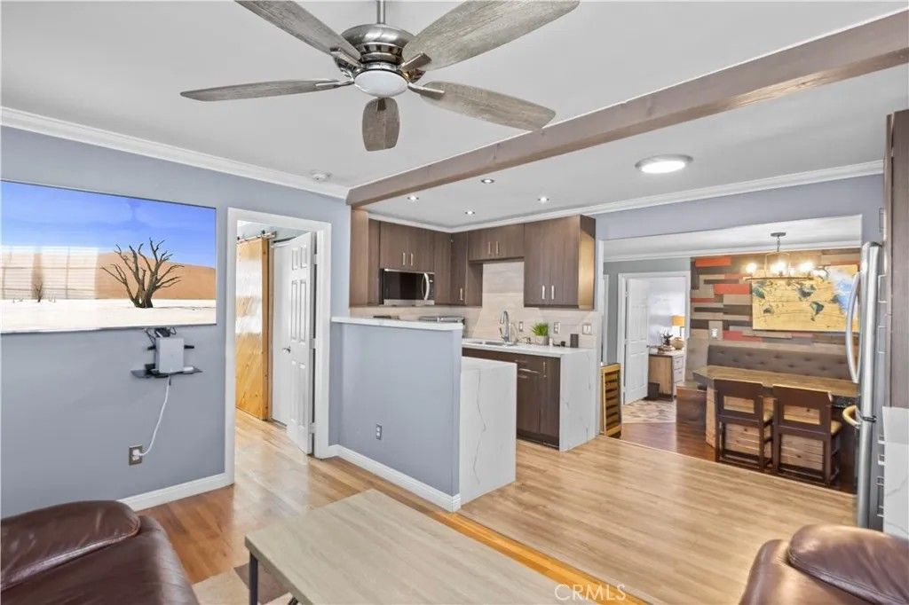 Nestled on a picturesque street on the south end of North Park, this masterfully remodeled Craftsman home offers the ultimate San Diego living experience. From the moment you arrive, the classic architecture and welcoming front porch beckon you into a home where timeless character meets contemporary design. The bright and airy interior flows seamlessly from the living room, anchored by historic details and rich hardwood floors, into a dining area and a well-appointed kitchen. Designed for both style and function, the kitchen boasts sleek quartz countertops, a full suite of stainless-steel appliances, and ample storage. Retreat to the tranquil primary bedroom, complete with an en-suite bathroom featuring modern fixtures, extra storage and a designer vanity. Two well-appointed secondary bedrooms offer comfort and versatility. Through the back bedrooms are doors to your private backyard perched on a North Park canyon, a peaceful space designed for outdoor fun, alfresco dining, and entertaining. Take a minute to enjoy the view from the jacuzzi! Location is everything. Leave your car behind and immerse yourself in the neighborhood's dynamic culture. You are a short stroll from countless top-rated eateries, boutique shops, artisan coffee, and the world-famous Balboa Park. With significant upgrades including paid for solar and a newer roof, this turnkey property is the opportunity you've been waiting for. Welcome home.