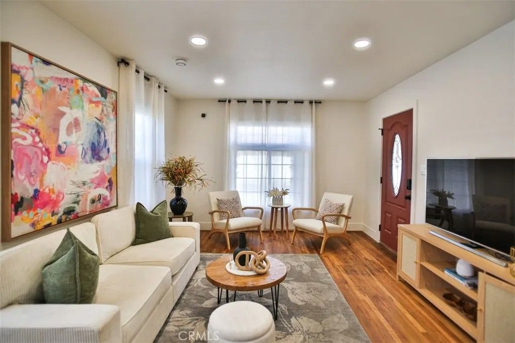 Welcome to 6851 Coachella Ave A Beautifully Updated Corner-Lot Home in Long Beach! This charming single-story corner home offers 3 spacious bedrooms and 1 bathroom, perfectly combining modern comfort with timeless character. Step inside to a bright living area featuring re-stained wood floors, recessed lighting, and abundant natural light. The tile flooring in the kitchen and hallway adds both style and easy maintenance. The remodeled kitchen showcases quartz countertops, new cabinetry, designer tile backsplash, and stainless-steel appliances, ideal for everyday living and entertaining. The dining area features a new modern chandelier, adding elegance and warmth. The upgraded bathroom offers contemporary finishes and fixtures for a clean, refreshed look. Enjoy the outdoors in your large private backyard with a detached 2-car garage or explore the potential to build an ADU and SB9 unit for additional income, with finished renderings included. Additional highlights include fresh interior and exterior paint and a long driveway providing ample parking. Situated on a quiet corner lot near schools, parks, shopping, and easy access to the 710 and 91 freeways, this move-in-ready home delivers comfort, functionality, and long-term value. 6851 Coachella Ave where modern updates meet opportunity and classic Long Beach charm!
