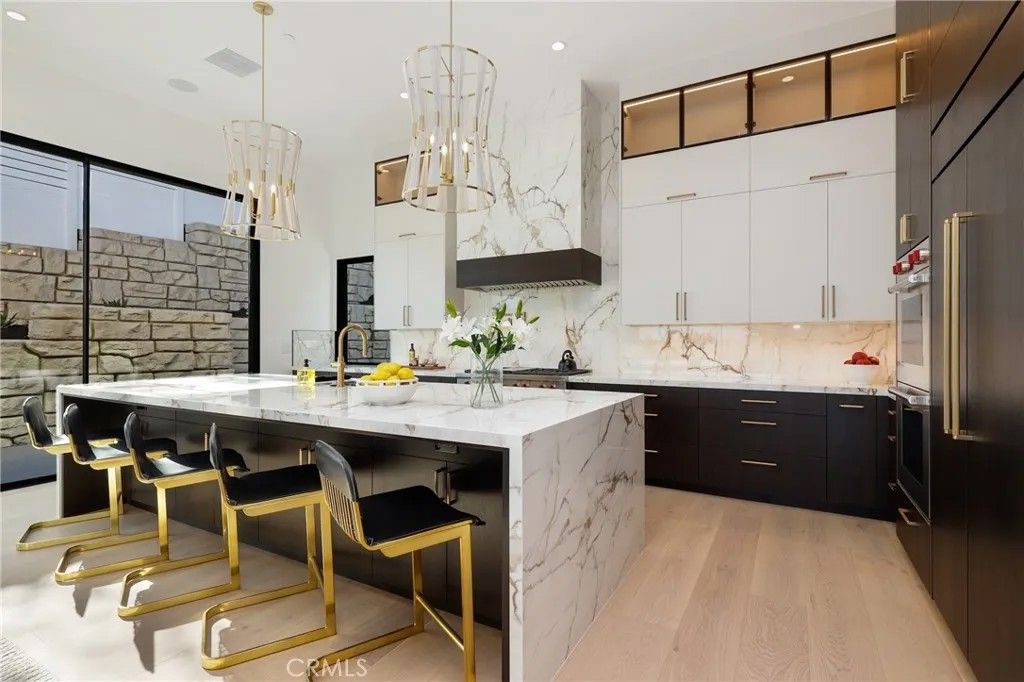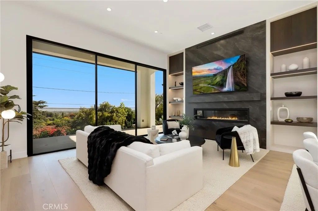 Perched atop an elevated 14,470 sq ft parcel with commanding views of Fashion Island and Catalina Island, this exceptional residence blends refined luxury with modern resilience. Newly completed by esteemed builder Fowler Villas, this 3,876 sq ft architectural statement features 4 bedrooms, 4.5 baths, and an uncompromising level of detail throughout. Beyond the stately faade, a grand permeable paver motor court welcomes guests with parking for up to 8 vehicles, in addition to a 3-car garage. Inside, soaring 12-foot ceilings, expansive Cortizo 10-foot sliding glass doors, and wide-open living spaces set the stage for elevated coastal living. The designer kitchen is a study in form and function, featuring dual-toned custom cabinetry by Stylite and Shinnoki, brushed brass hardware, glass-lit uppers, a 48'' 6 burner cooktop plus grill, and a full suite of professional-grade Wolf appliances such as: cooktop, oven, microwave drawer, and a chefs hood. Also included is a Cove dishwasher, a pot filler, and a Subzero refrigerator and beverage center. An elegant butlers pantry and built-in cabinetry add sophistication and practicality, while a striking 74-inch Napoleon fireplace anchors the living area in warmth and style. Three graciously appointed ensuite bedrooms are located on the main level, including a versatile flex room ideal for a game lounge, studio, or home theater on the bottom floor. Upstairs, the sumptuous primary suite commands breathtaking panoramic views, a sizable walk-in closet, spa-like bathroom with Kholer fixtures, a soaking tub, a step-in shower, and it is complemented by an additional flex spaceperfect for a home office, private gym, or retreat. Thoughtfully engineered for convenience and peace of mind, the home is equipped with a windowed elevator by California Custom Lifts, as well as a Savant smart automation systems for seamless control of lighting, climate, security, and entertainment. The residence includes fire sprinklers, closed eaves; as well as lush new landscaping approved for defensible space. A brand-new vinyl perimeter fence completes the eco-conscious outdoor environment. To add to the ambiance, there are speakers throughout the home. Structurally fortified with mechanical stabilization and gravity retaining wall systems, the home exemplifies lasting luxury and integrity. A rare offering of this caliber, combining panoramic views and cutting-edge design. Home is Turn-key and ready for its new owner.
