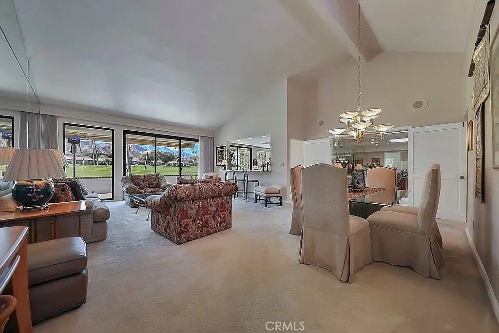 Views! Views! A spectacular 180-degree backdrop of the San Gorgonio, San Jacinto and Santa Rosa Mountain ranges, double fairways and a water feature! A sought-after location steps from the entrance of the Rancho Las Palmas Country Club, this homes foyer welcomes you with a private courtyard and tranquil landscaping. The beveled glass doors and travertine floors in the entry invite you into a vaulted ceiling living space with these magnificent views. Floor-to-ceiling and clerestory windows amplify the bright natural light of the living room, perfect for desert entertaining. The kitchen offers travertine floors and granite countertops. Awnings shade the back patio while you enjoy the comfort of morning and evening views of the double fairway that a one time was the landing strip for private planes before the construction of the Marriott, now Omni, hotels. A converted atrium with skylights serves as a 3rd bedroom. New double paned windows and sliders throughout. Wonderful for full-time or resort living for those seeking a blend of comfort, luxury, and an active lifestyle. As a Rancho Las Palmas Country Club resident, you have access to a 27-hole golf course, 26 swimming pools and spas, a fitness facility, tennis courts, and more. Minutes from the Omni Resort, this home invites you to take a short walk to The River, a destination for movies, dining and evening entertainment. Rancho Mirage is central to Palm Springs, Palm Desert, the famed El Paseo shopping district, and easy access to golf courses, hiking, and top dining. Do not miss the opportunity to own this exceptional home that combines luxury living with golf course & mountain views.