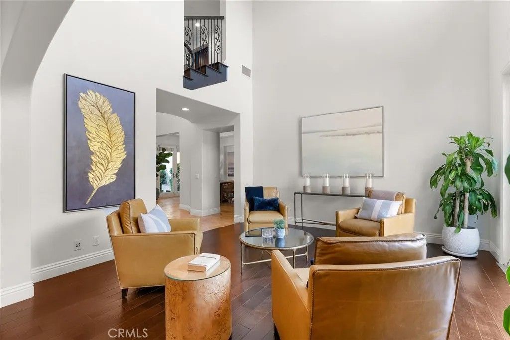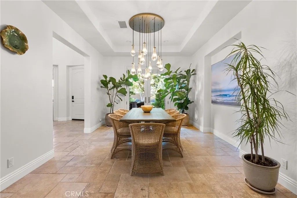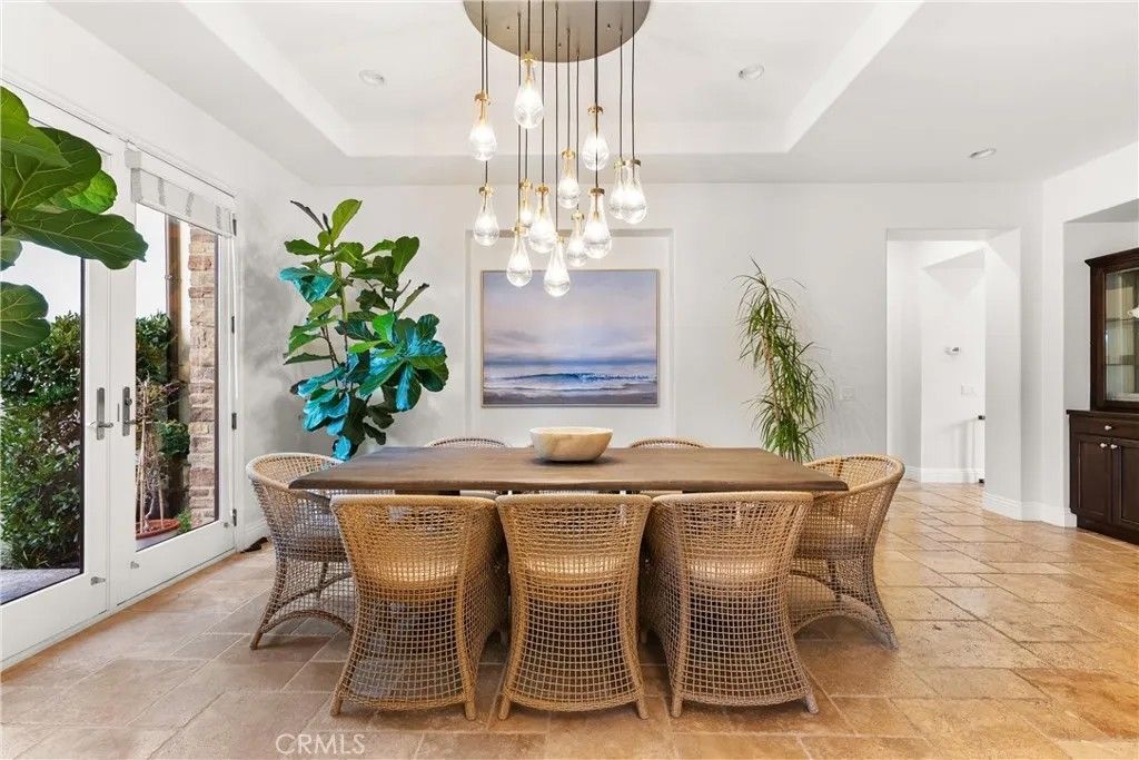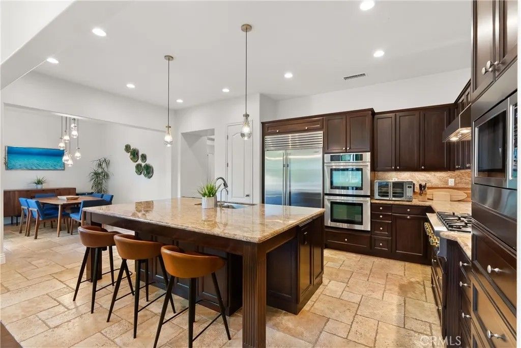 Located in the prestigious gated community of Rancho Madrina, this five-bedroom, five-and-a-half-bath residence combines timeless architecture with modern elegance. The home features a full smooth-coat exterior finish and fresh paint that create beautiful curb appeal, complemented by refined hardscape, fountains, and a redesigned landscape with a saltwater pool and spa. Inside, the grand entry showcases soaring ceilings, a dramatic chandelier, and designer lighting accents that set the tone for sophistication throughout. The open-concept kitchen flows seamlessly into the family room and outdoor entertainment area with a covered patio, built-in BBQ, and TV, perfect for gatherings and relaxed living. Multiple French doors, rich wood flooring, custom built-ins, and four fireplaces add warmth and character. Each bedroom includes its own ensuite bath, while the main-level suite provides flexibility for guests or multigenerational living. Additional highlights include newer appliances, recessed lighting, solid-core doors, and a three car tandem garage with custom cabinetry. Conveniently located near historic downtown San Juan Capistrano, Marbella Golf Course, award-winning schools, and Orange Countys world-class beaches.