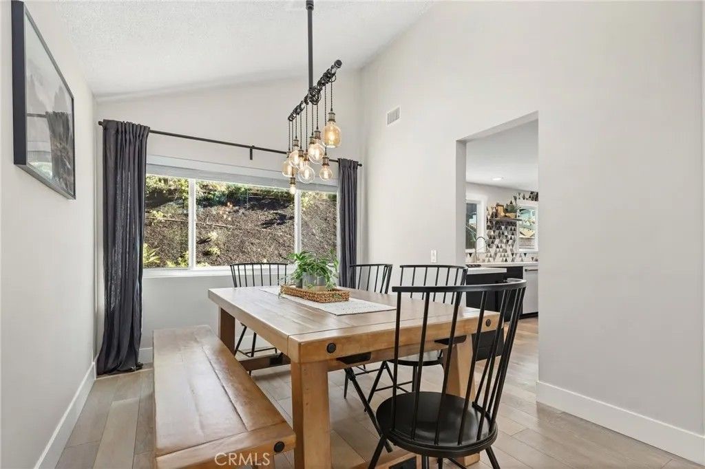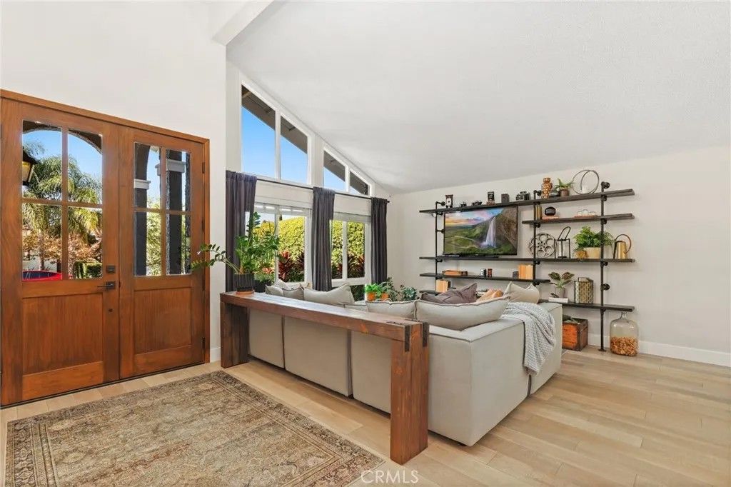Welcome to 23962 Warsaw, a stunning fully renovated 4 bedroom, 2.5 -bath split-level pool home with 2,415 square feet of living space, ideally situated on a quiet cul-de-sac in the highly sought-after S & S Eldorado community of Mission Viejo. This home has been completely reimagined from top to bottom and is truly turnkey, offering the perfect blend of style, comfort, and modern functionality. The open floor plan features soaring vaulted ceilings and a bright, spacious design that flows effortlessly between the living, dining, and family areas. The beautifully remodeled kitchen opens to the family room and showcases an exposed glulam beam, lava-finish quartz countertops, solid wood soft-close cabinetry, an impressive eight-and-a-half-foot island, and GE Caf dual-fuel appliances that combine gas and electric precision. Large newer windows fill the home with natural light, while fresh designer paint, new AquaGuard waterproof laminate flooring, and six-inch baseboards create a clean, contemporary feel throughout. Upstairs, the primary suite serves as a true retreat with a fully renovated bathroom featuring a walk-in shower, soaking tub, private water closet, and custom walk-in closet. Three additional bedrooms provide ample flexibility for family, guests, or a home office. The backyard is designed for entertaining, complete with a sparkling pool, new heater, pump, and filter, and lush landscaping that includes a pink-lemonade tree in front and two lime trees in the back. Every major system has been thoughtfully upgraded, including a new concrete roof, new furnace, new water heater (2025), new ductwork, attic sanitation with R-40 insulation, and a 200-amp electrical panel. A 16-panel owned solar system keeps energy costs low, and the new garage doors with side-mounted opener maximize headroom in the three-car garage. The home also features a custom eight-foot handmade mahogany front door, fresh exterior paint, and a six-zone irrigation system for easy maintenance. Located minutes from the I-5 freeway, shopping, restaurants, parks, and award-winning schools, this beautifully updated home combines luxury and practicality in one of Mission Viejos most desirable neighborhoods. With no HOA and no Mello Roos, 23962 Warsaw is not a fixerits a move-in-ready showcase home that perfectly balances quality, character, and convenience.